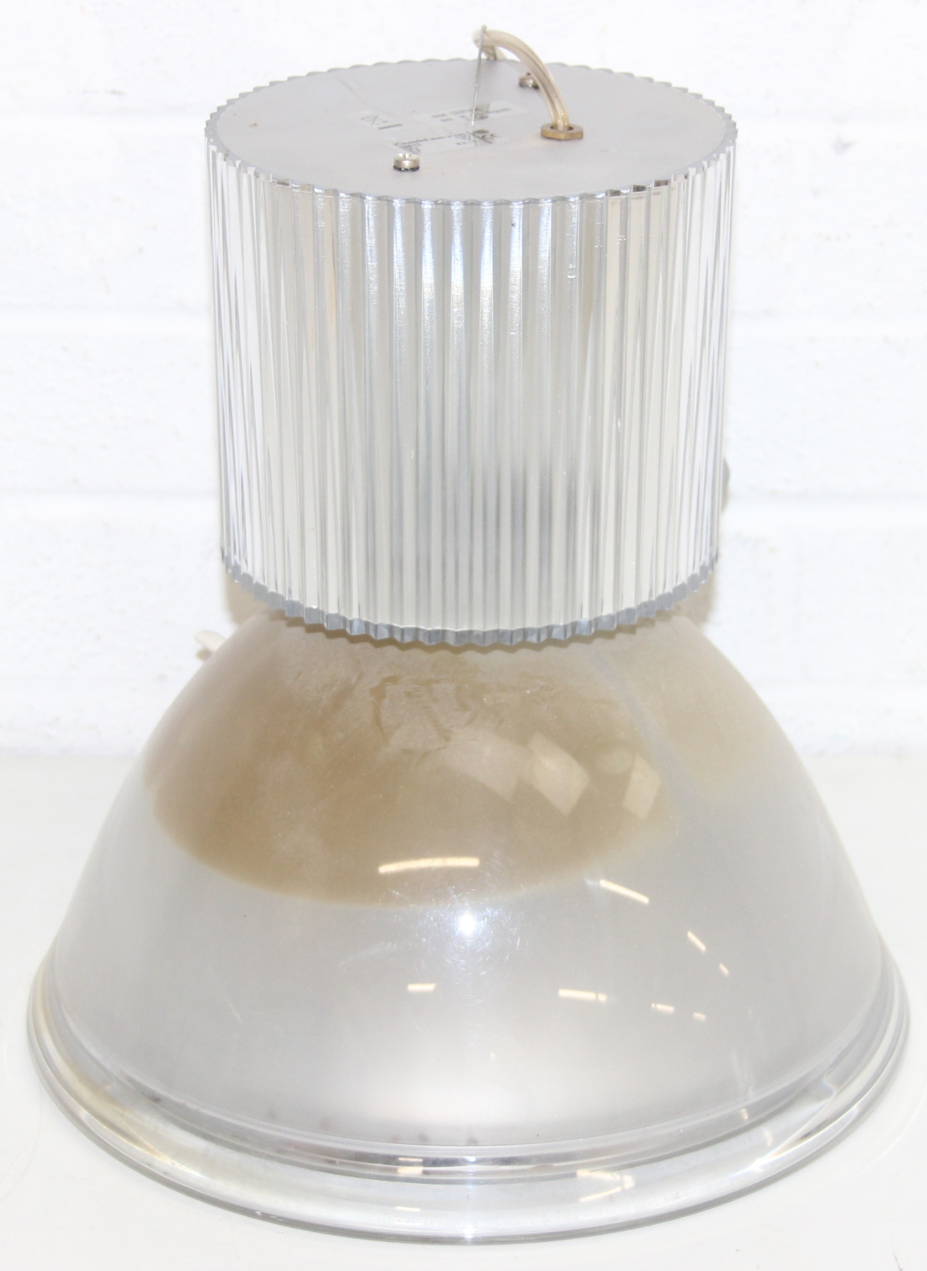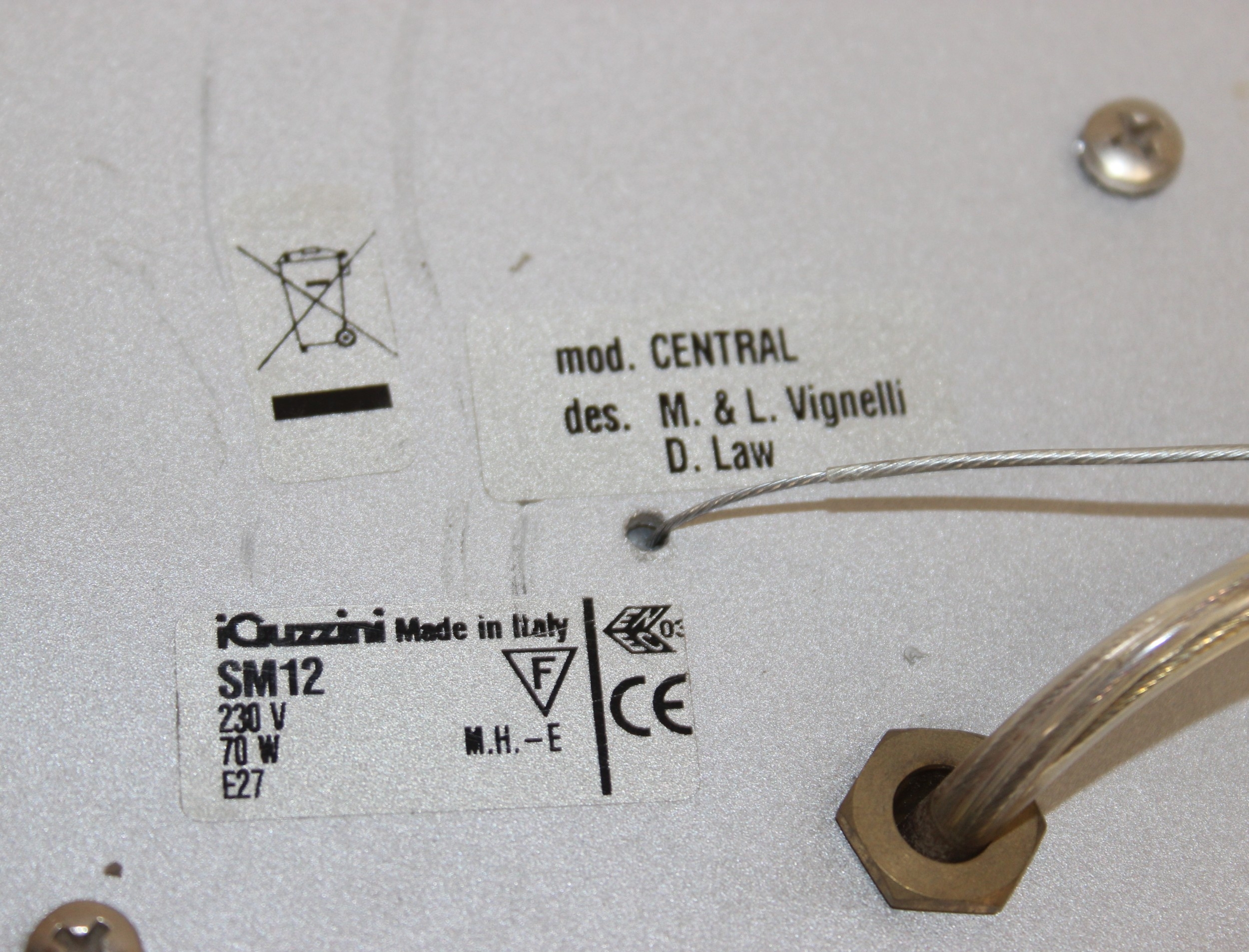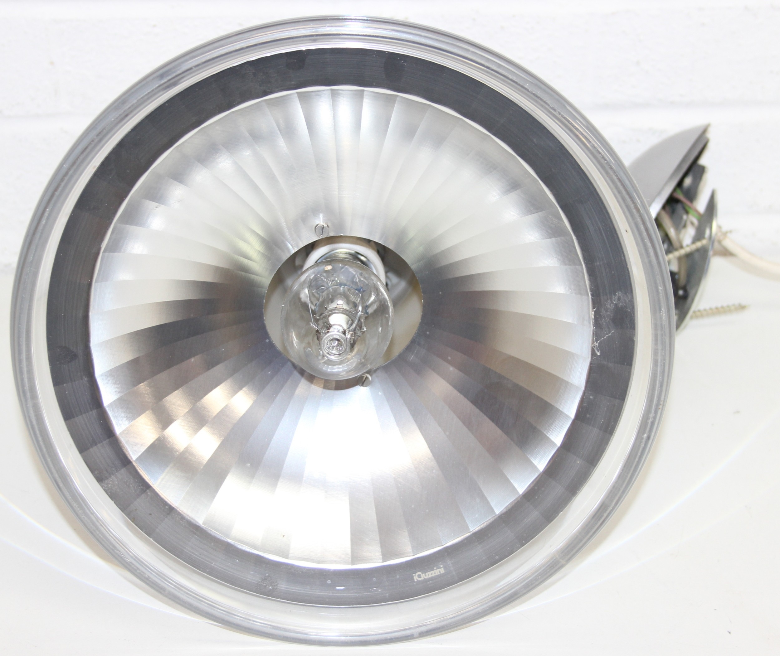 iGuzzini or Guzzini of Italy - an industrial style designer hanging pendant ceiling light designed by M & L Vignelli & D. Law, Central model, 30cm in diameter x 32cm tall, one of five in the sale