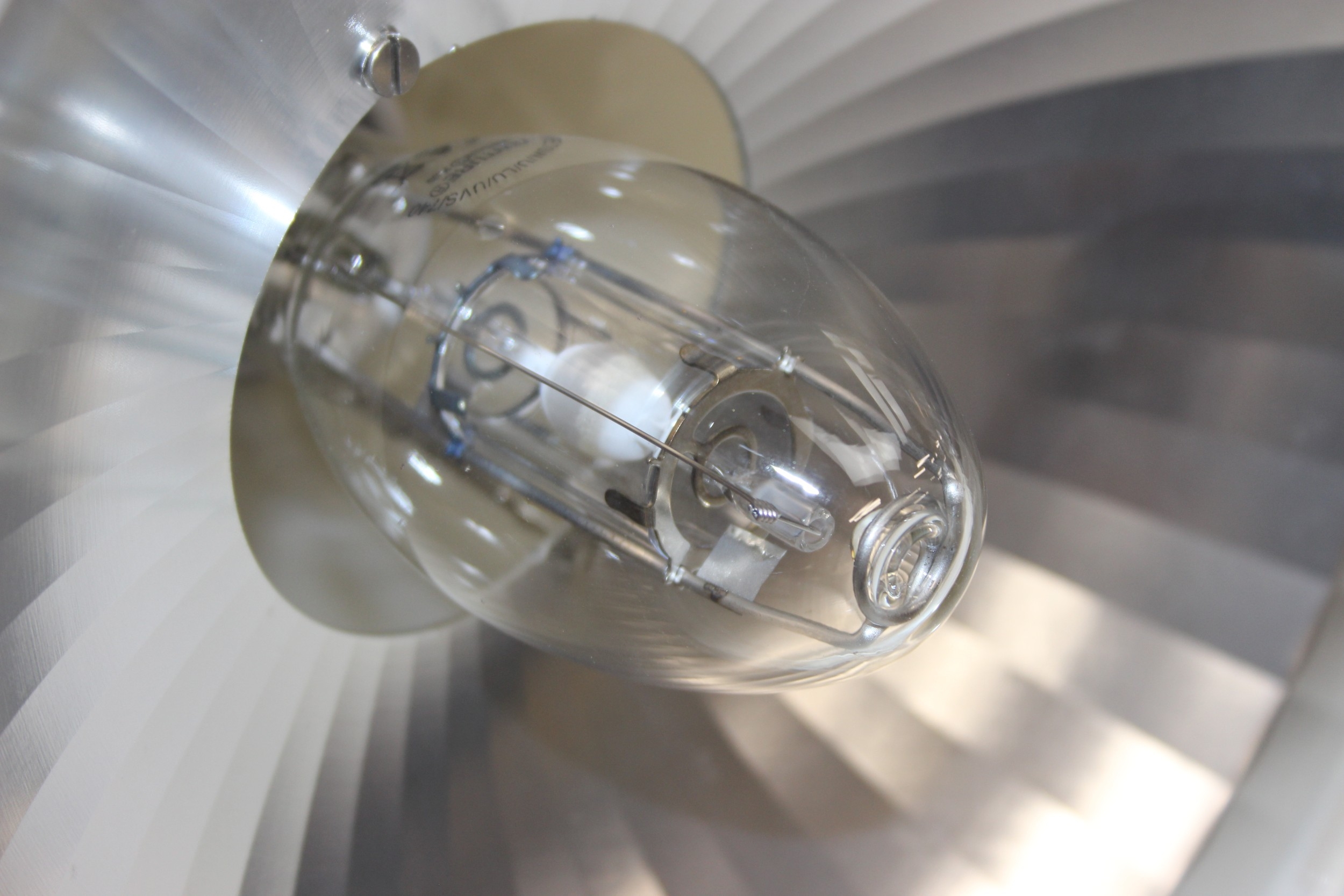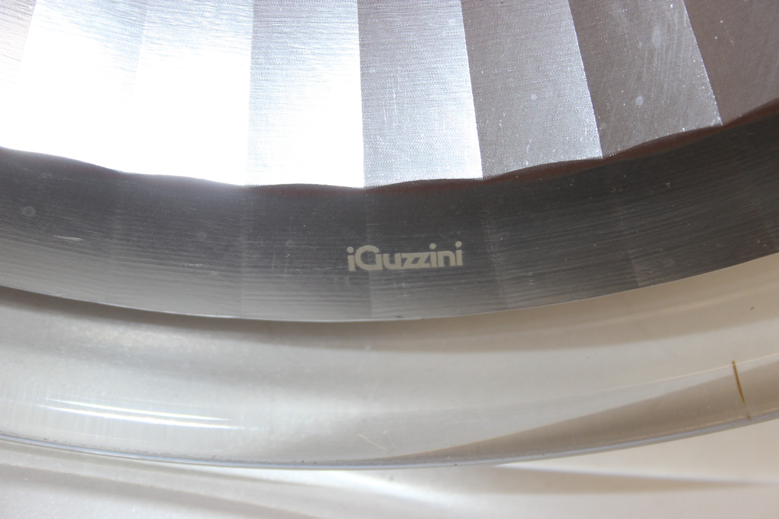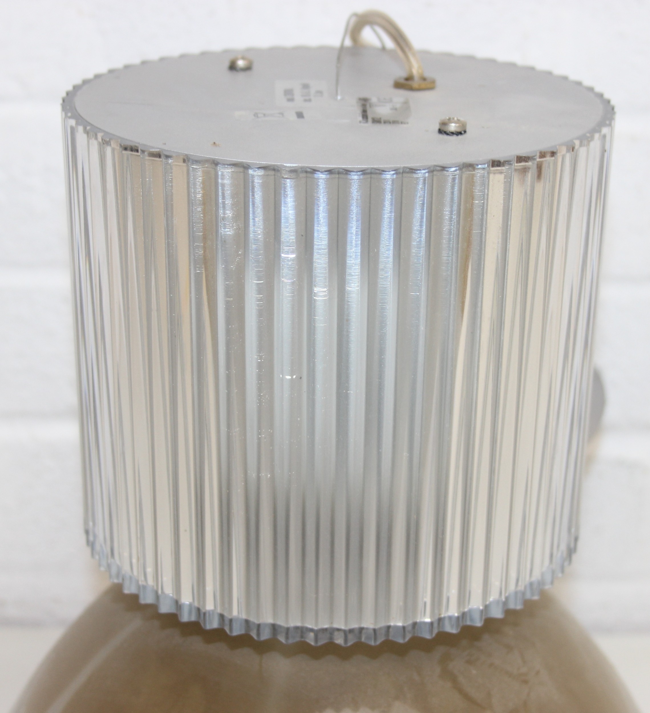 iGuzzini or Guzzini of Italy - an industrial style designer hanging pendant ceiling light designed by M & L Vignelli & D. Law, Central model, 30cm in diameter x 32cm tall, one of five in the sale