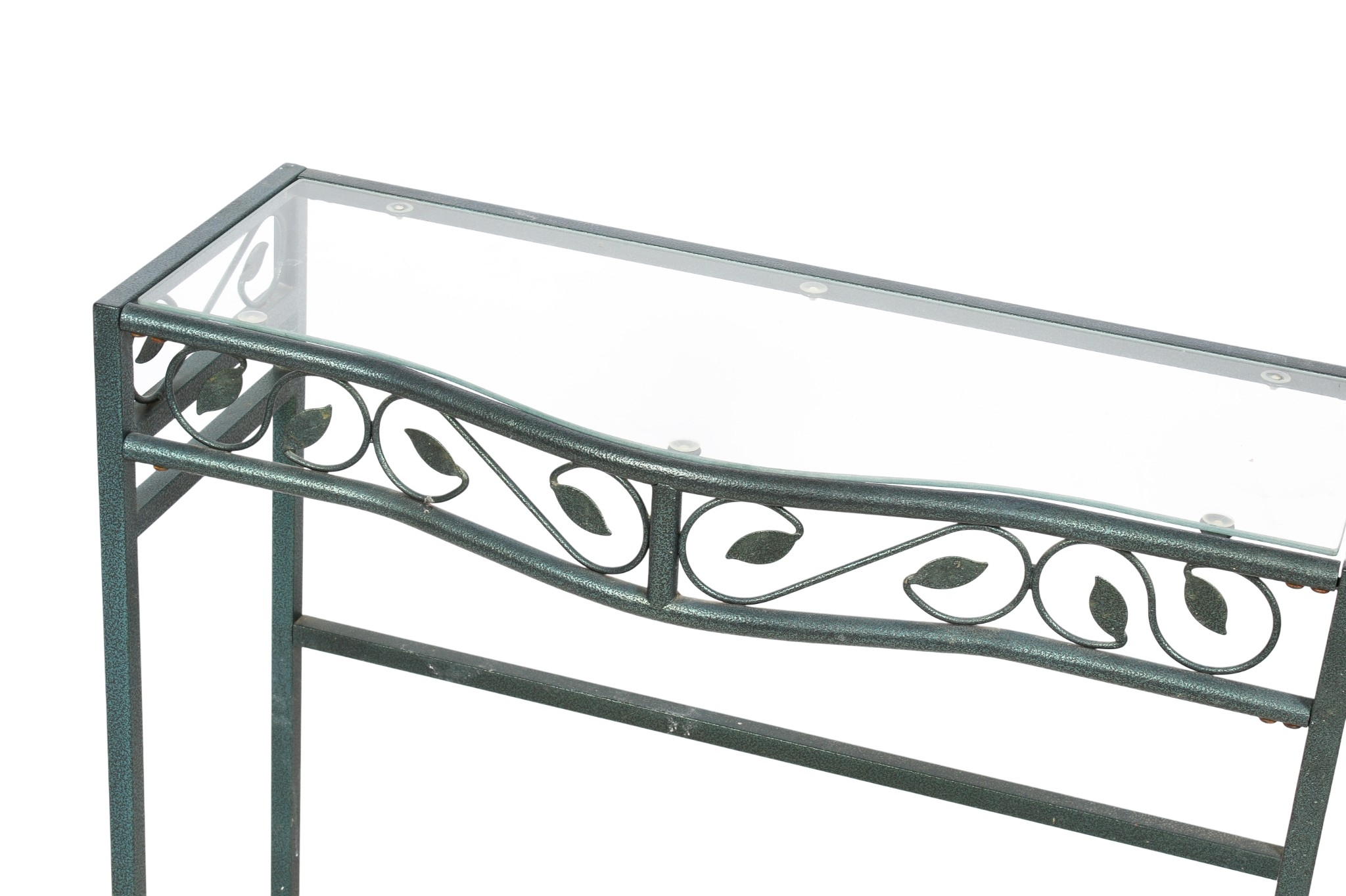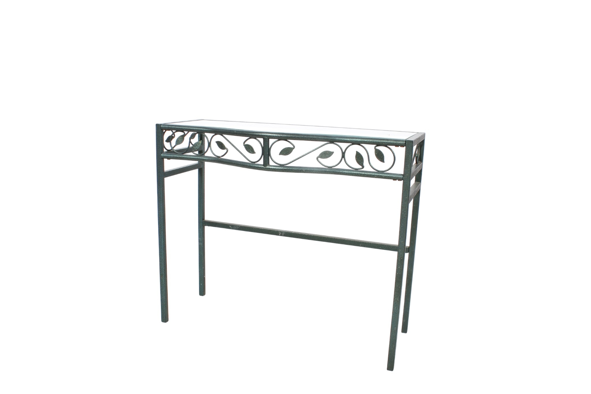 A contemporary metal framed glass top console hall table. H72cm x W85cm x D34cm