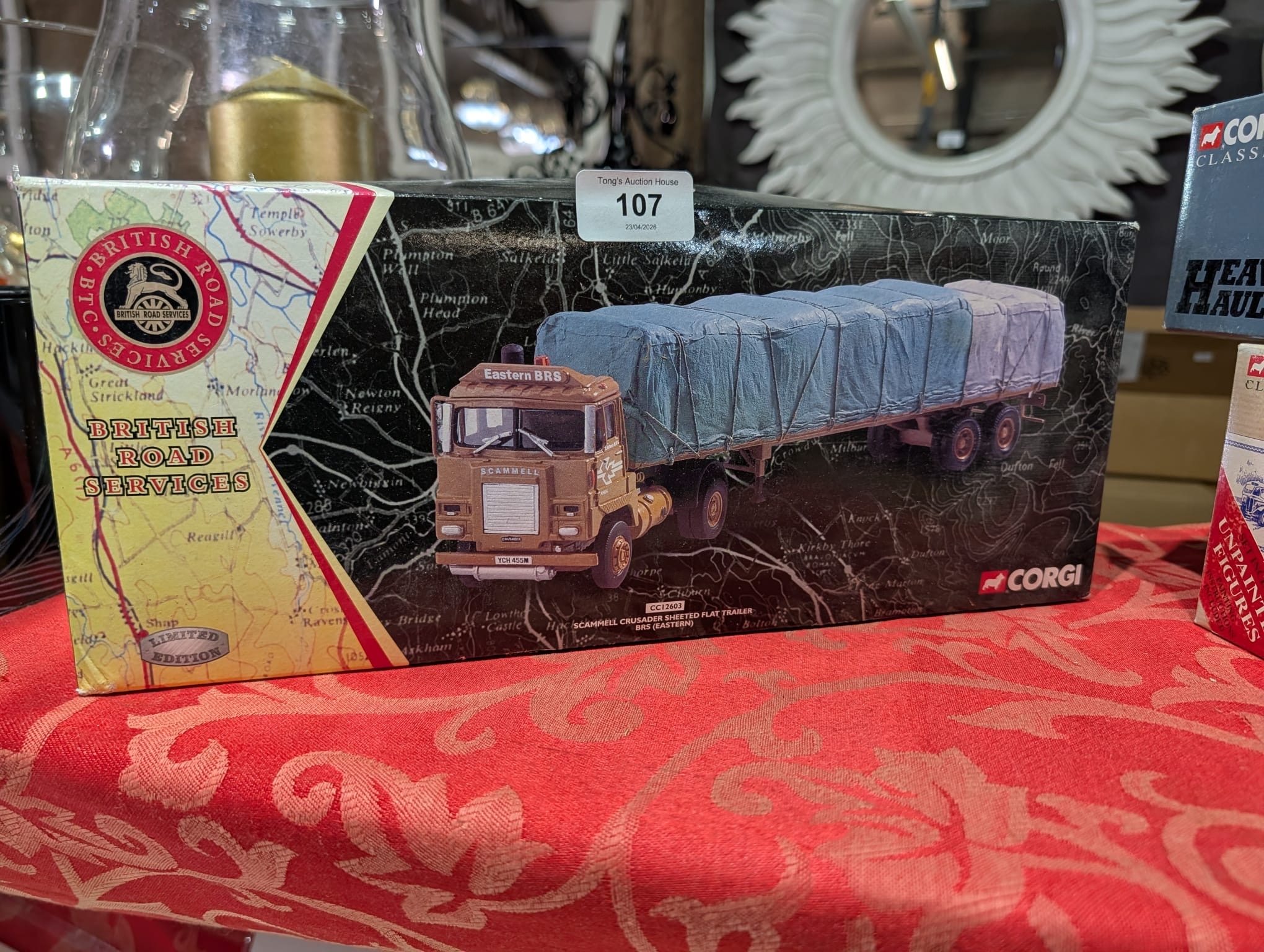 Corgi 1/50 scale die-cast model of a Scammell Crusader Sheeted Flat Trailer in Eastern British Road Services (BRS) livery, specifically model number CC12603.