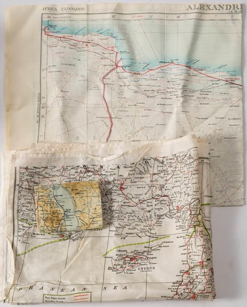 Three RAF silk maps:, comprising 'Alexandria-Torbruck' second edition, 'Cyprus' (stained) and 'Mozambique' double sided Northern & Southern (3)