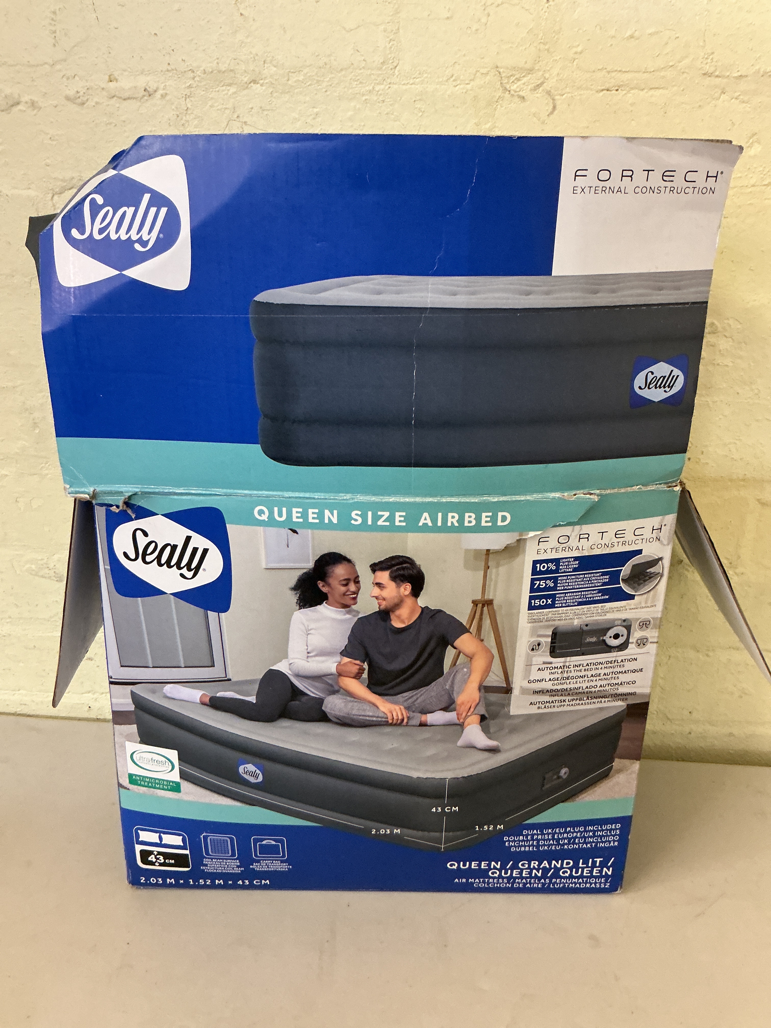 BOXED SEALY QUEEN SIZE INFLATABLE MATTRESS WITH BUILT IN PUMP
