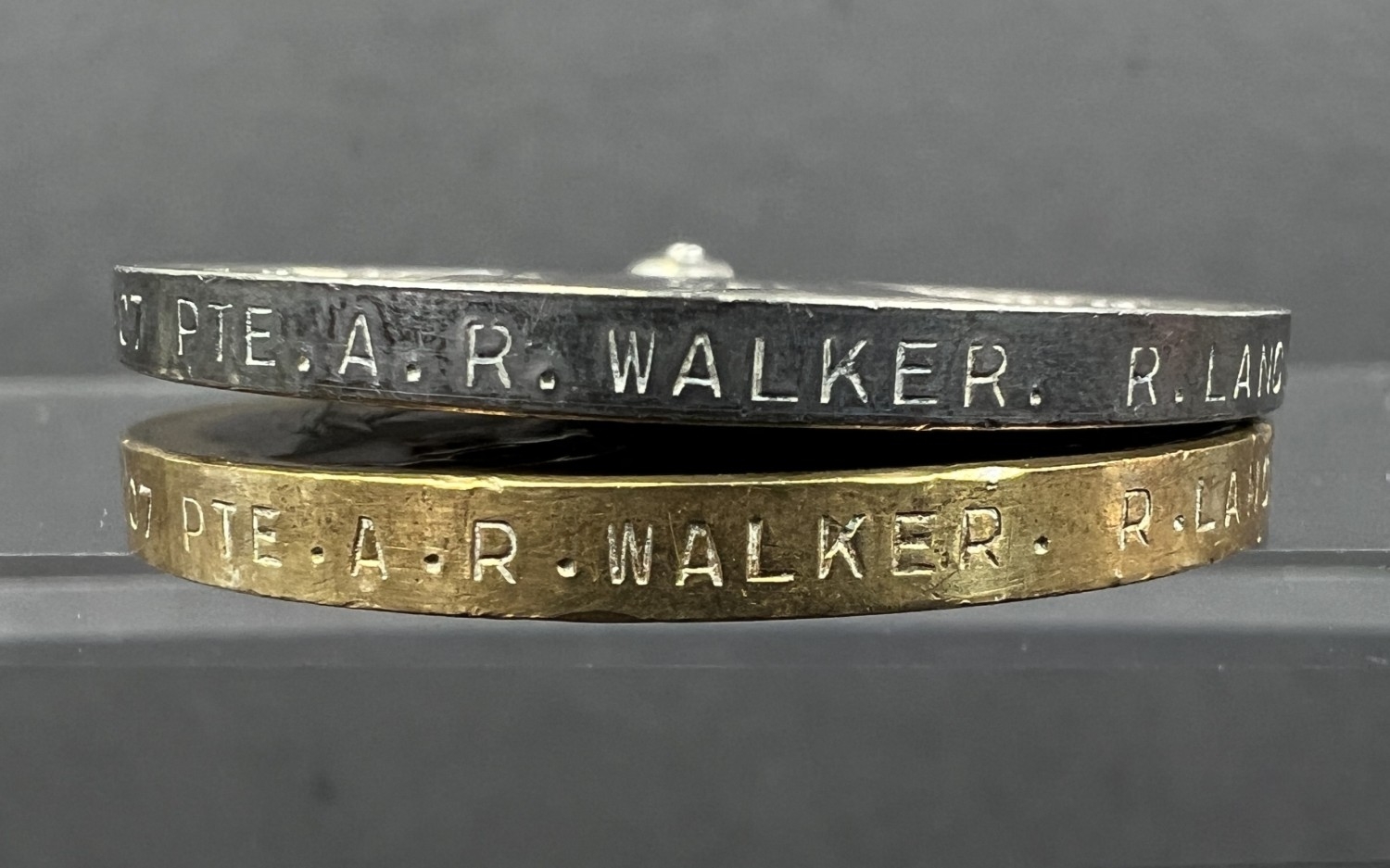WWI Pair of Victory and War medal awarded to PTE A. R. Walker R. Lanc R