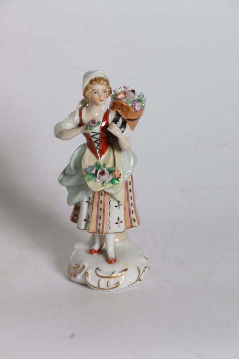 Sitzendorf porcelain figure of a flower collector, 15cm tall.