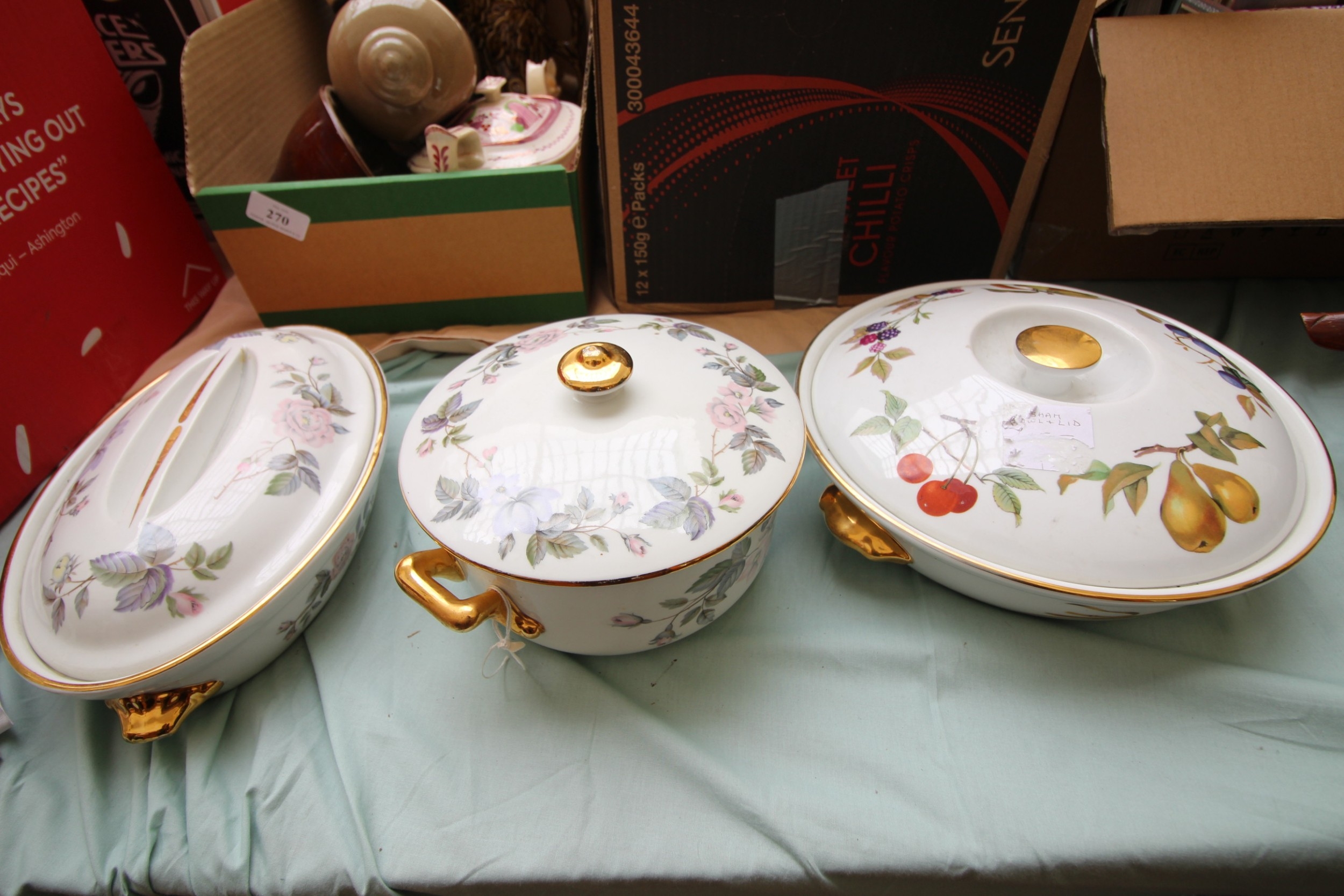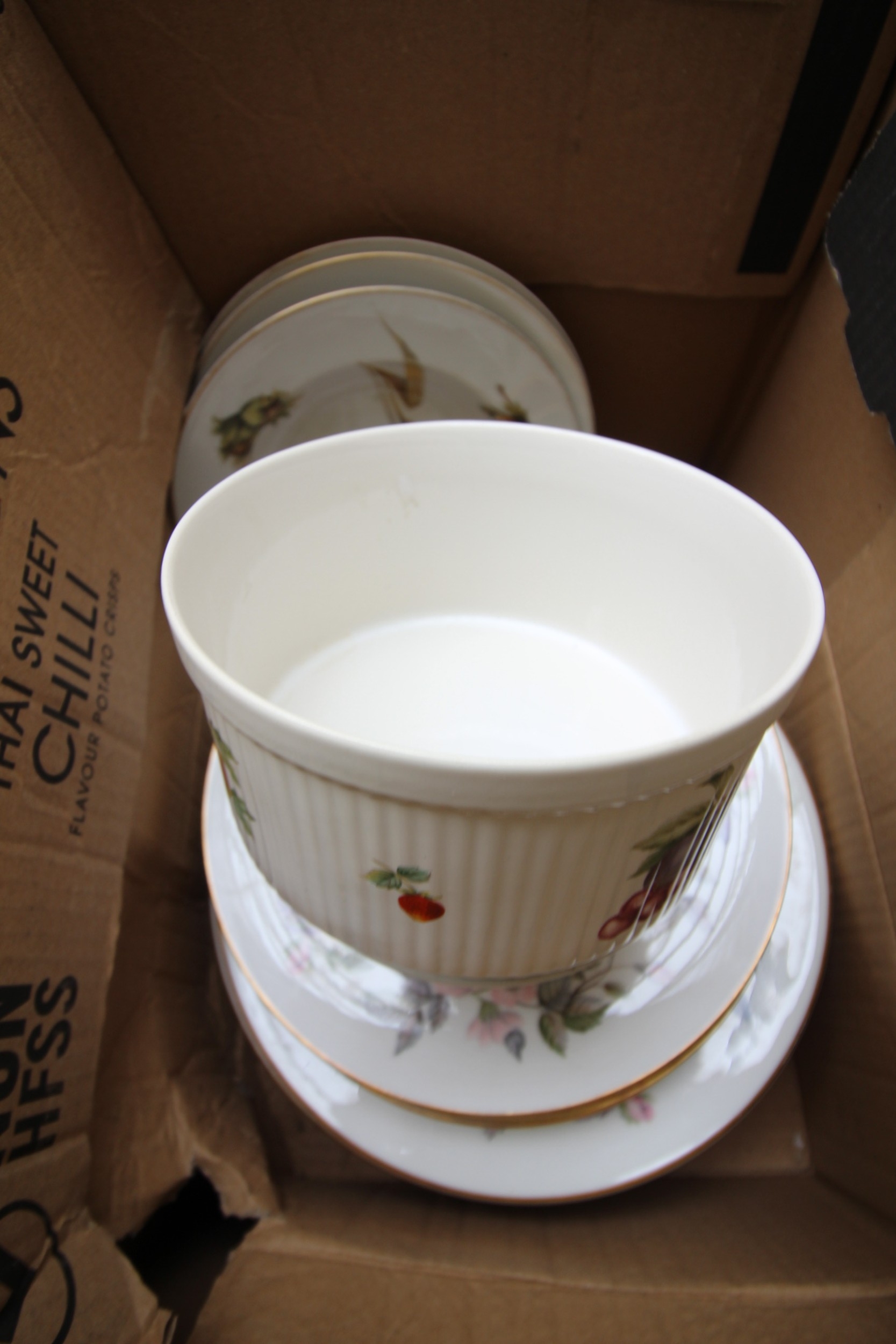 Various selection of ROYAL WORCESTER dinnerware including Evesham tureen, fruit sprays, wild harvest and good selection of dinner plates and side plates