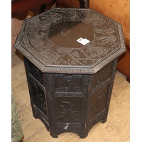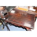 CONDITION: Overall of a dark blackish mahogany tone but some patching to the top which now lifts off the underframe and needs re-glueing, minor wear and tear to legs but otherwise good condition, probably dates to c.1900