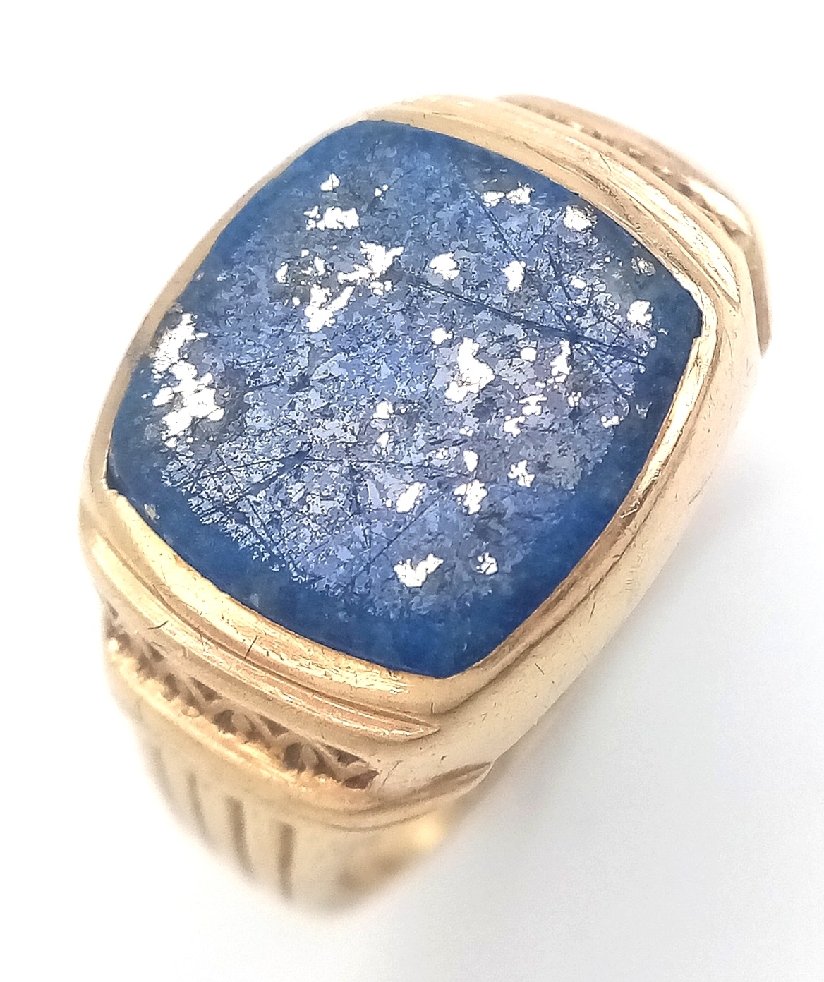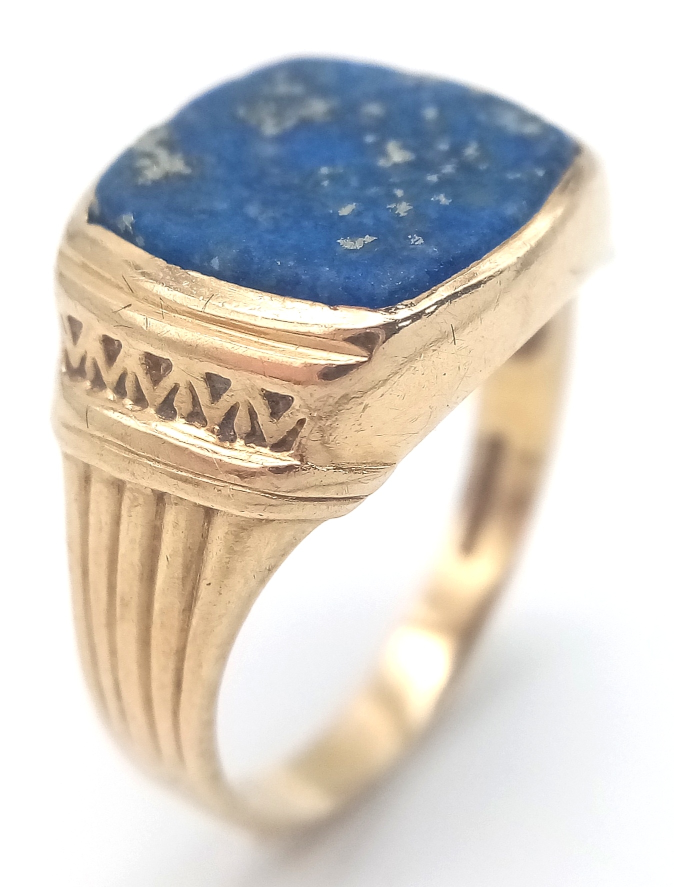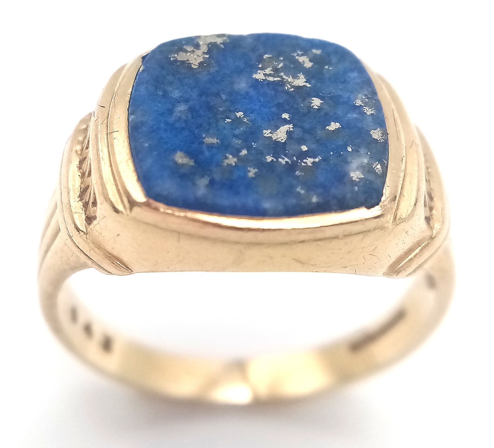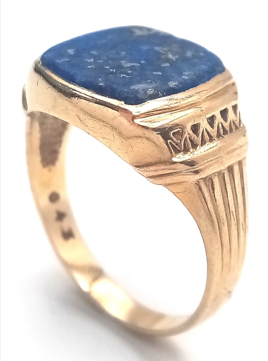 Vintage 9 CARAT GOLD and LAPIS LAZULI SIGNET RING. Beautiful Corinthian Design to Sides with ‘STARRY NIGHT’ Detail to top. Full UK hallmark . 4. 17 Grams. Size Q 1/2. Please see pictures.