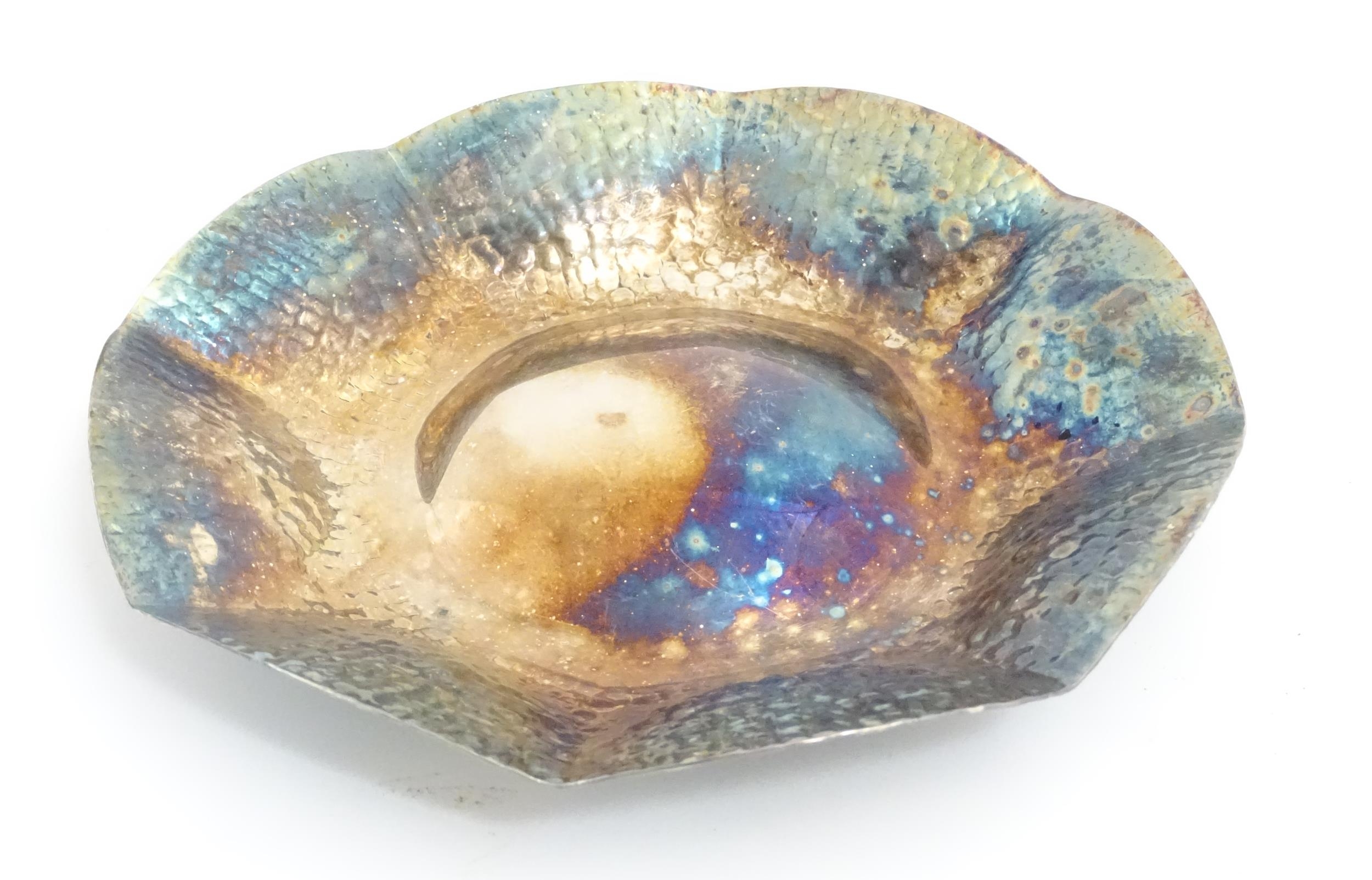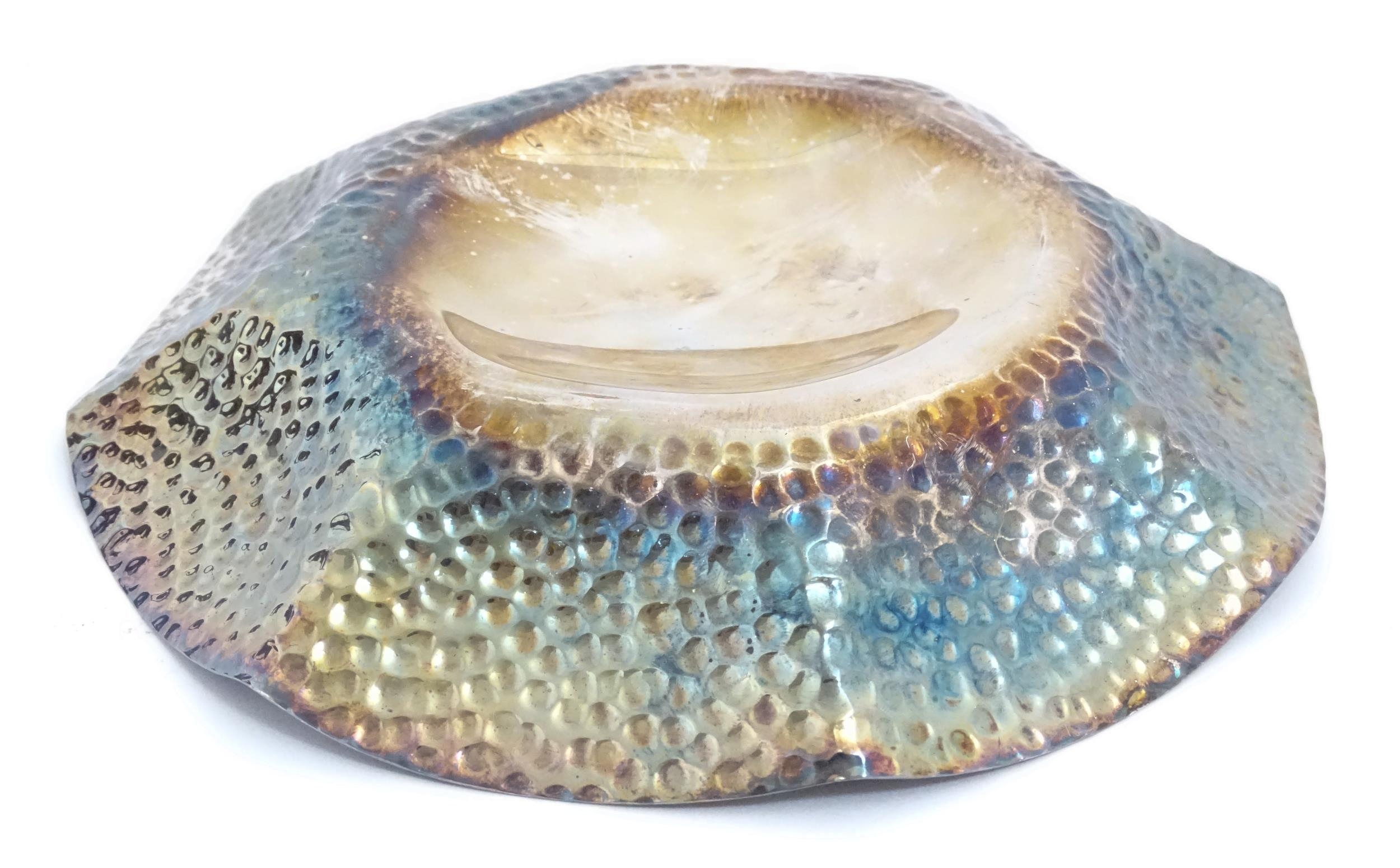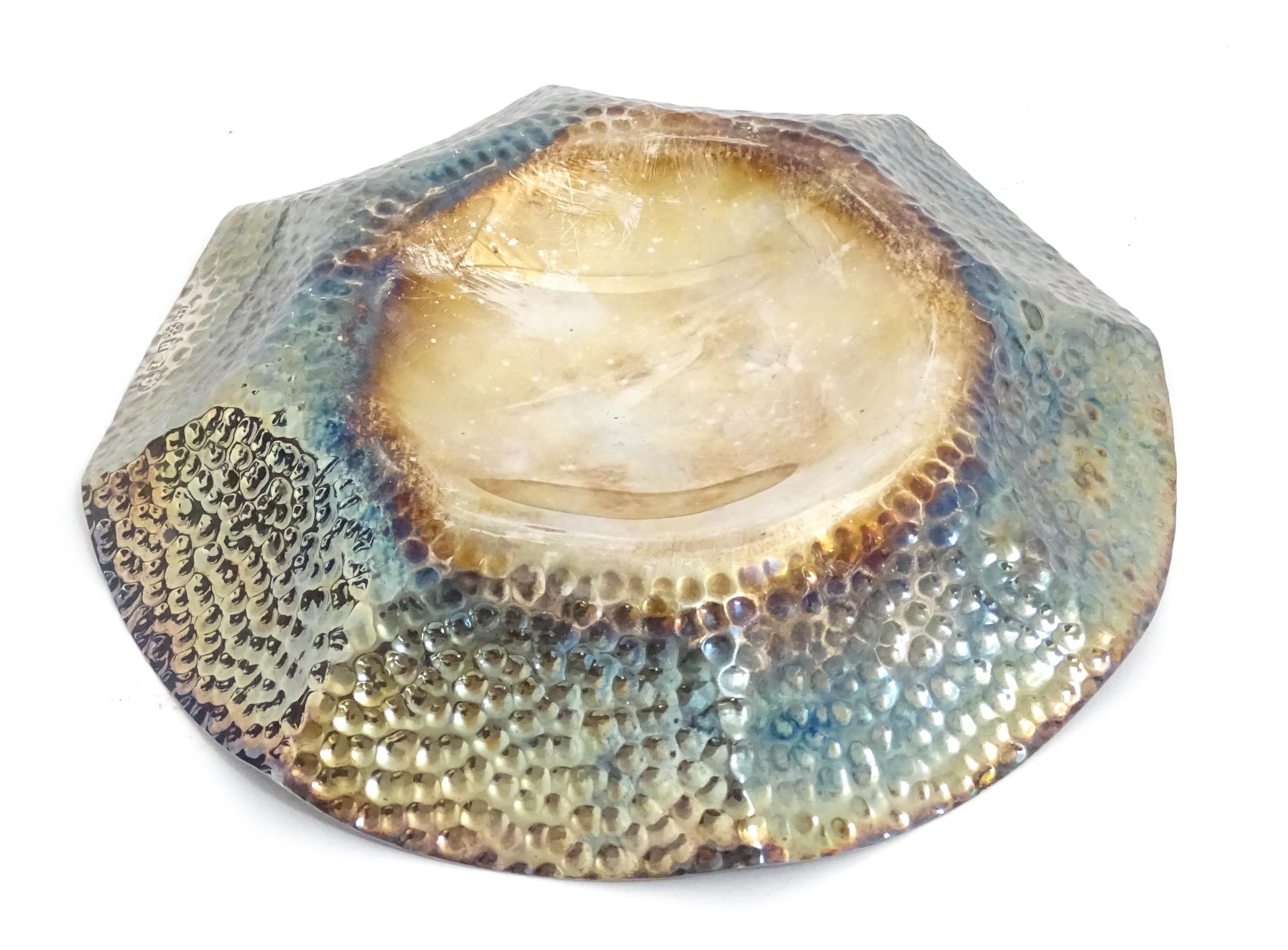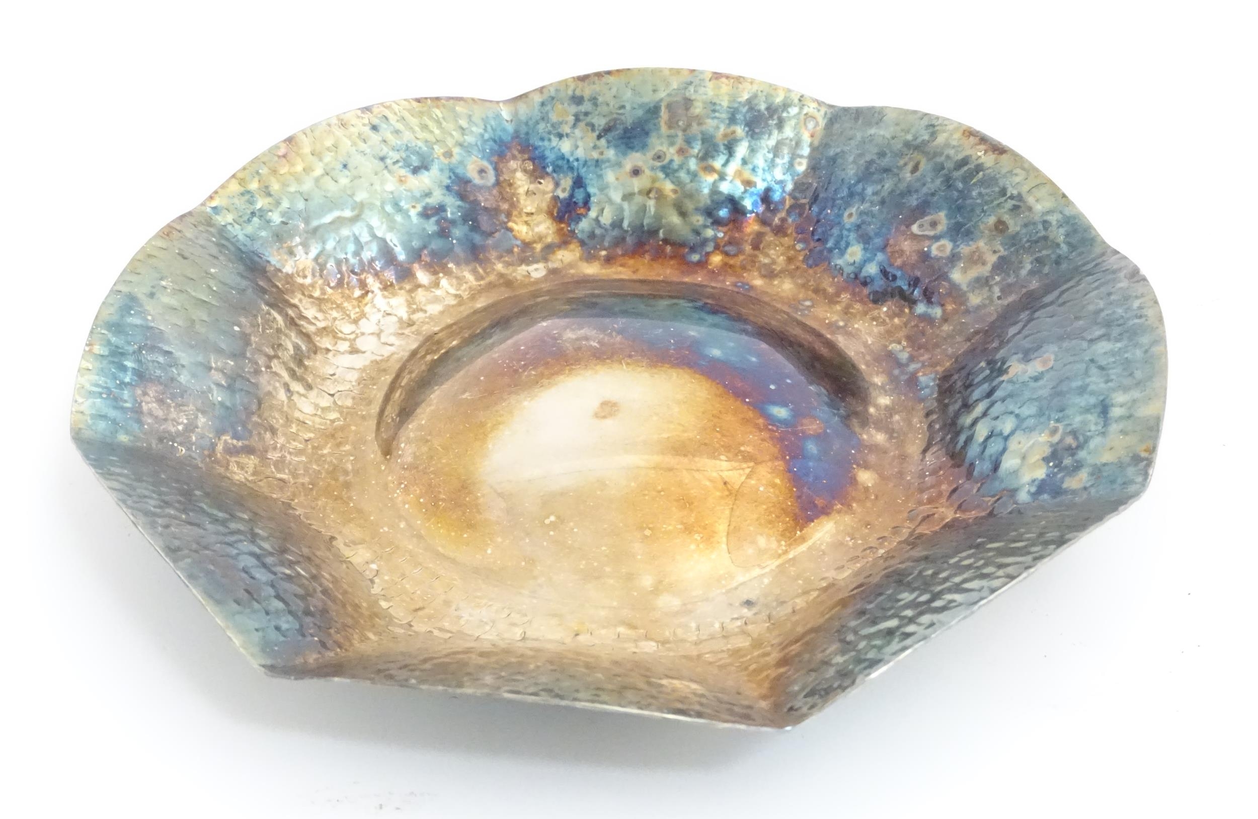 A silver plate dish of octagonal form with hammered decoration. Approx. 8" wide