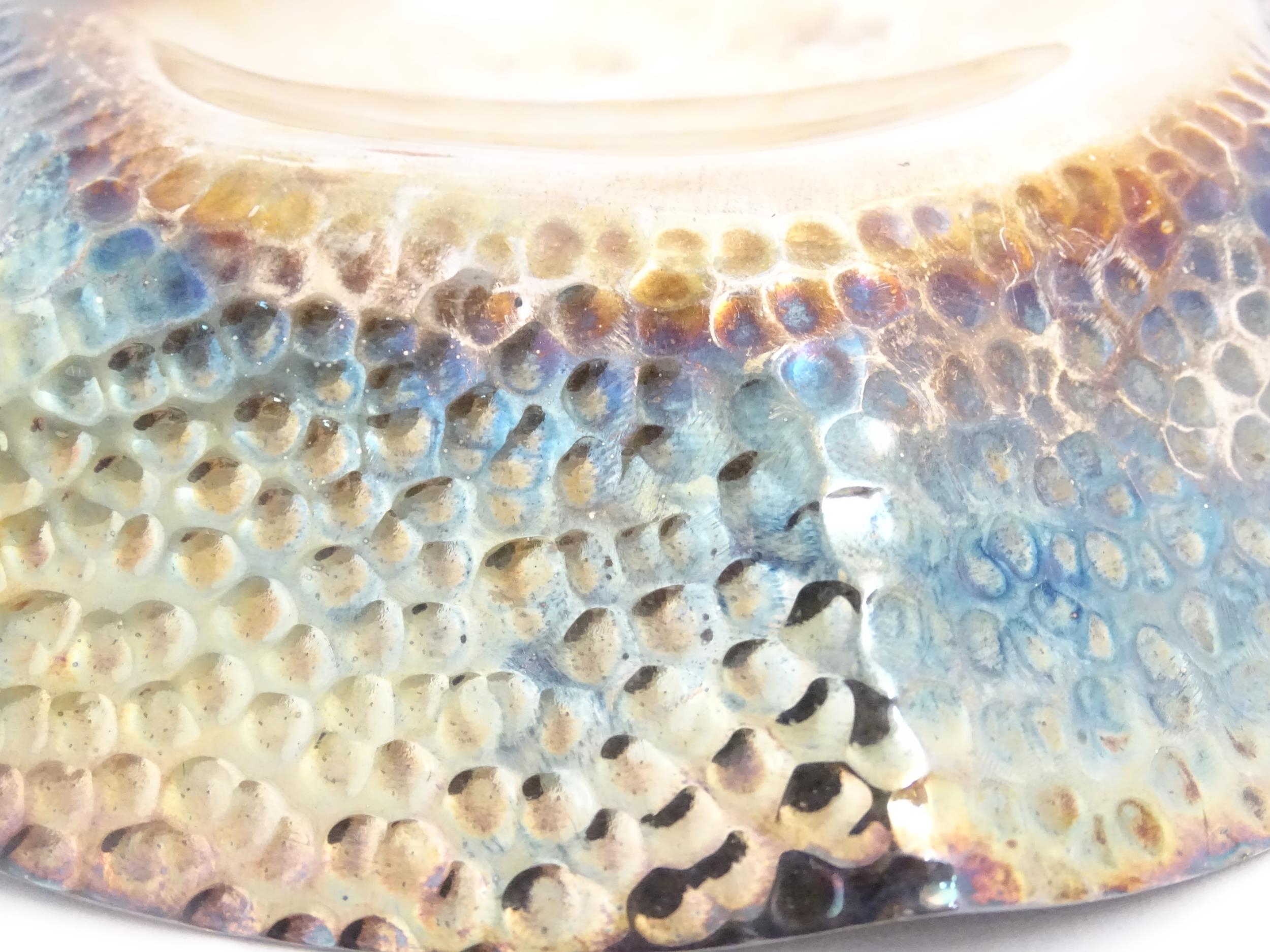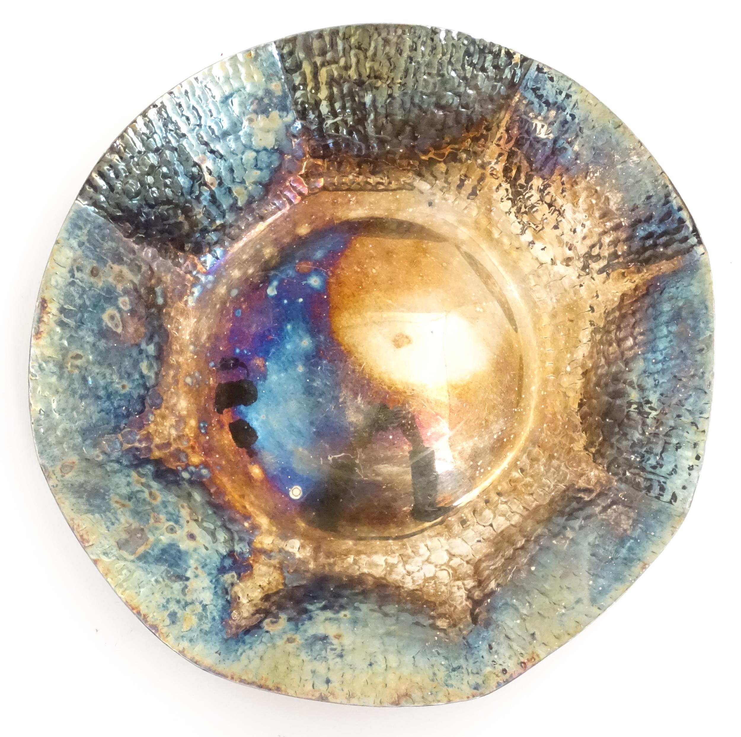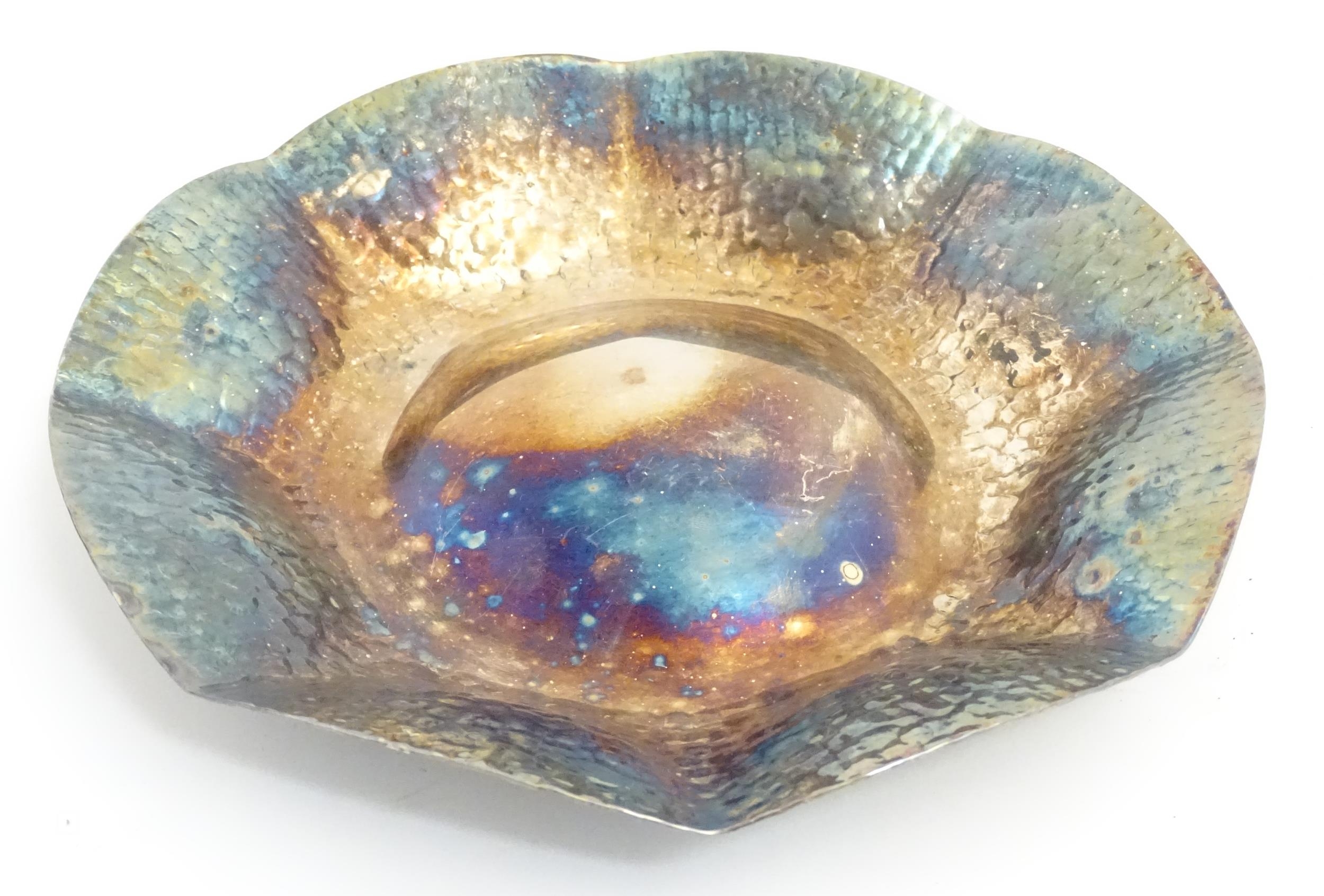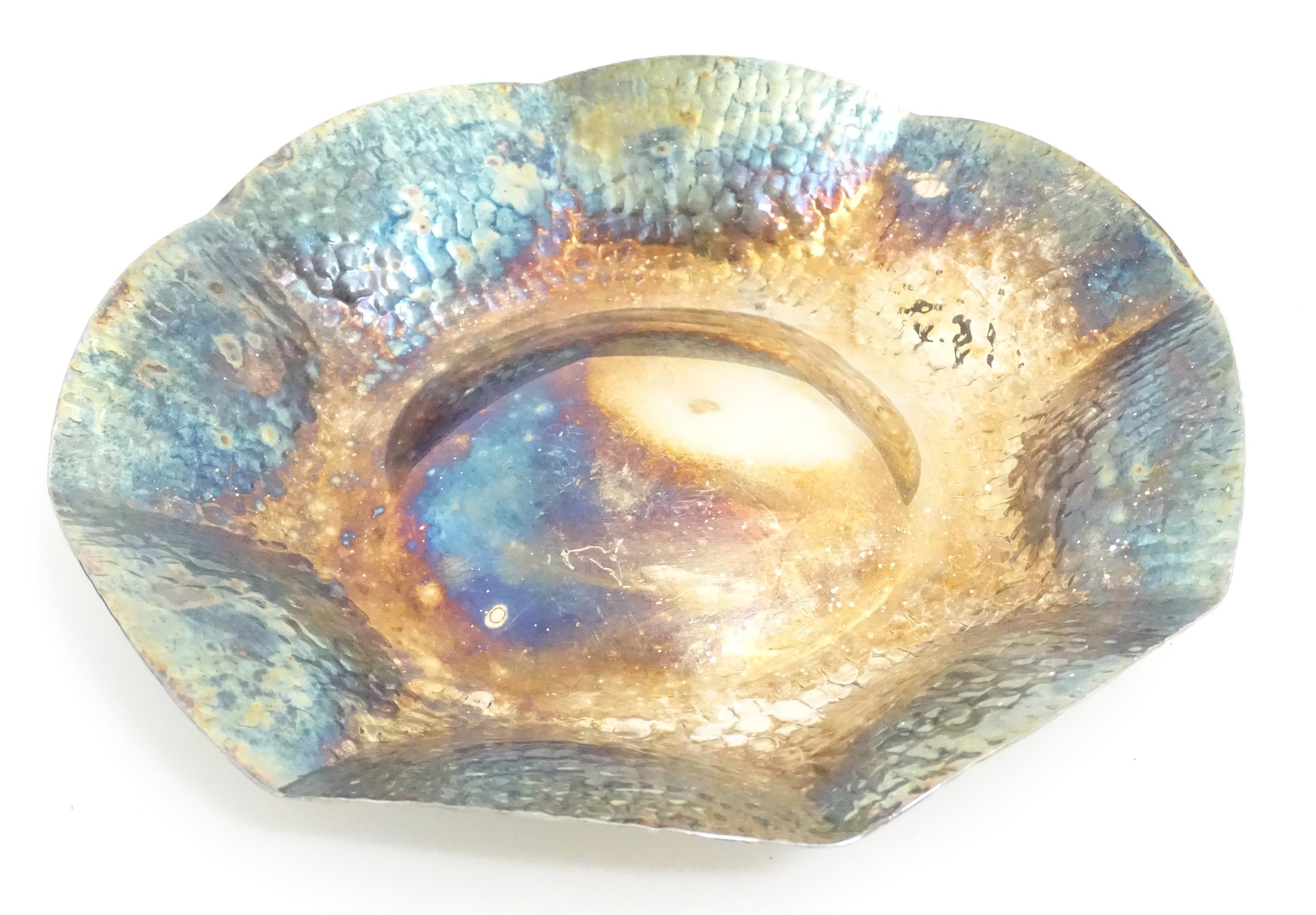 A silver plate dish of octagonal form with hammered decoration. Approx. 8" wide