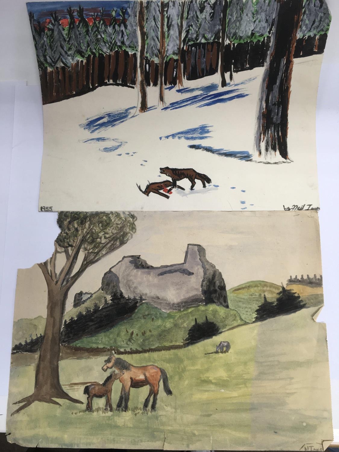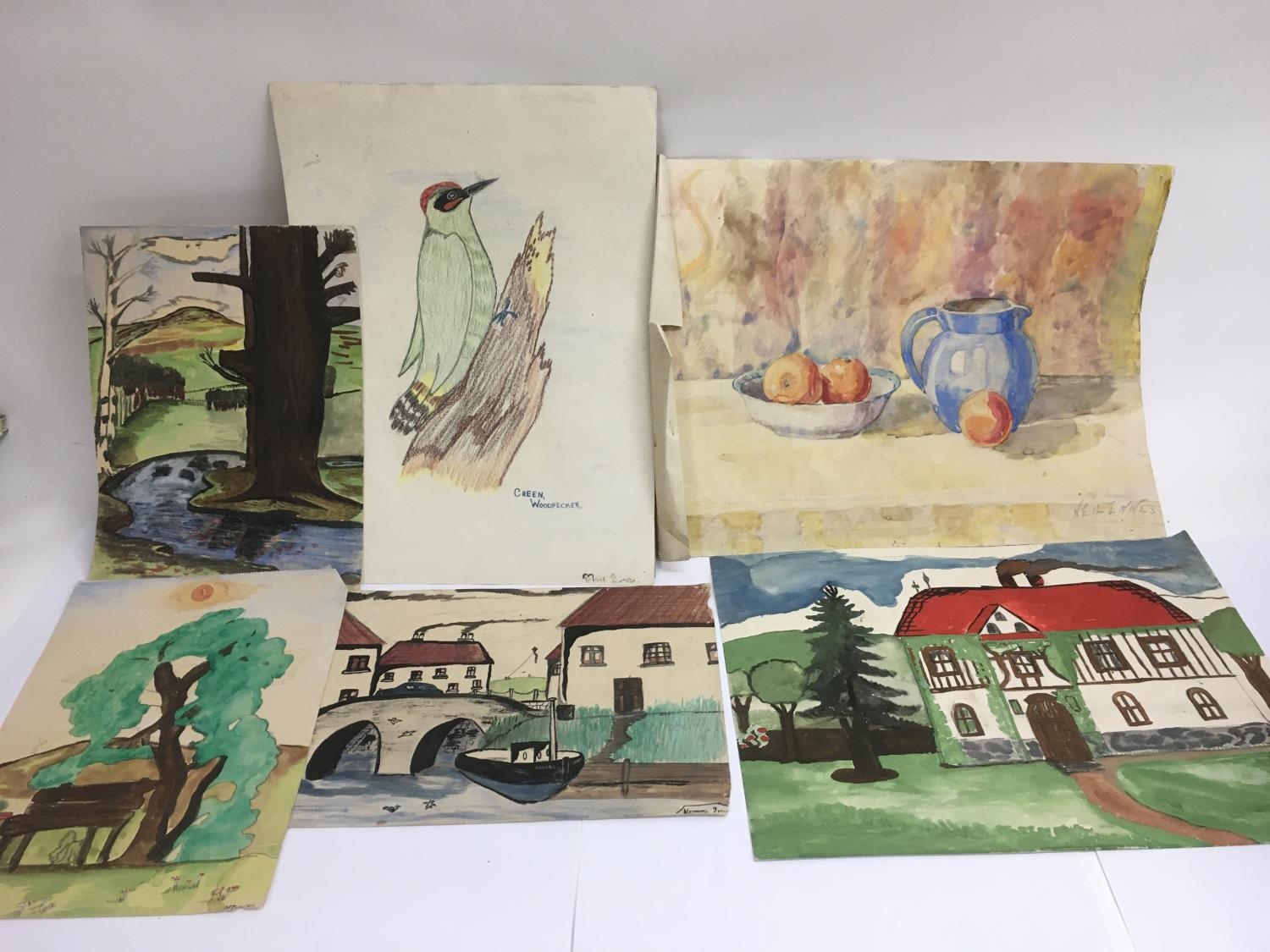A fascinating collection of early paintings attributed to Neil Innes (The Rutles) and his brother Iain. Please note that there is no provenance provided with this lot and buyers must satisfy themselves as to the authenticity of this item before purchasing as we are not experts in this field.