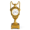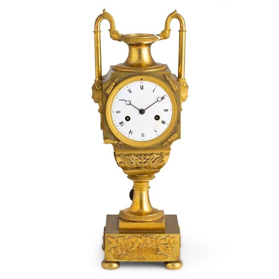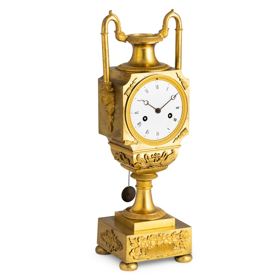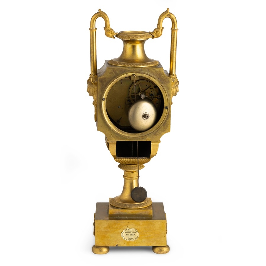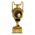 OROLOGIO A PENDOLO D'APPOGGIO IN BRONZO DORATO, A FORMA DI URNA, FRANCIA, CIRCA 1815 CIRCA