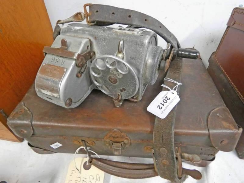 TIM ENGLAND TICKET ISSUE MACHINES LTD, PATENT NO.368802, MARKED R56 IN A SUITCASE WITH LABEL MARKED 'GLASGOW CORPORATION TRAMWAYS TICKET MACHINE'