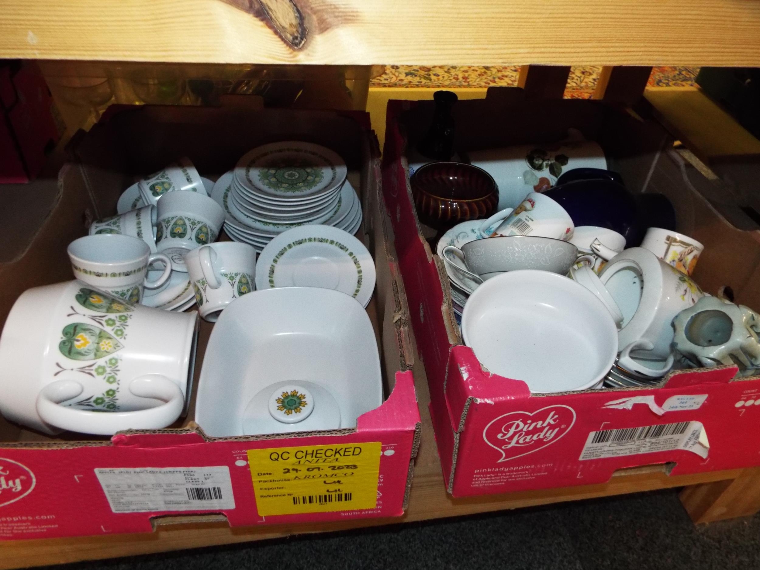 A mixed selection of assorted china to include a Noritake part dinner service, pots, bowls tea-pots etc in two boxes