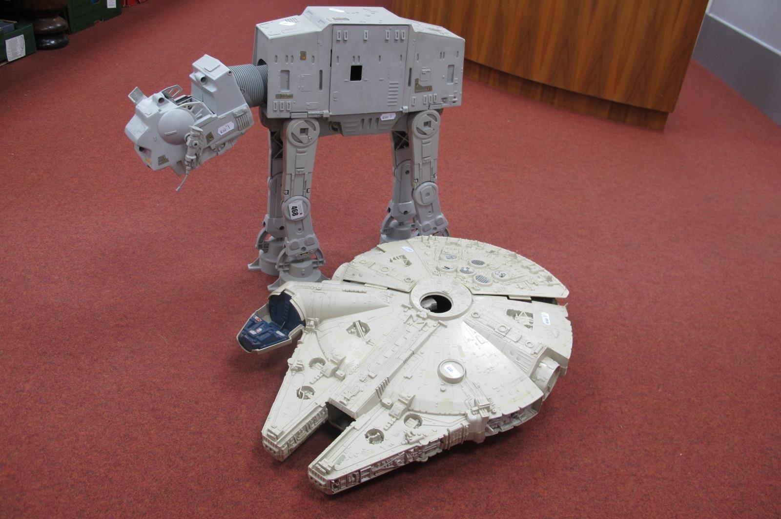 Original Star Wars Trilogy Plastic Toy Models, At-At (Kenner) and Millennium Falcon (Kenner) both incomplete, missing small parts, playworn, together with a Princess Leia plastic model figure (1980).