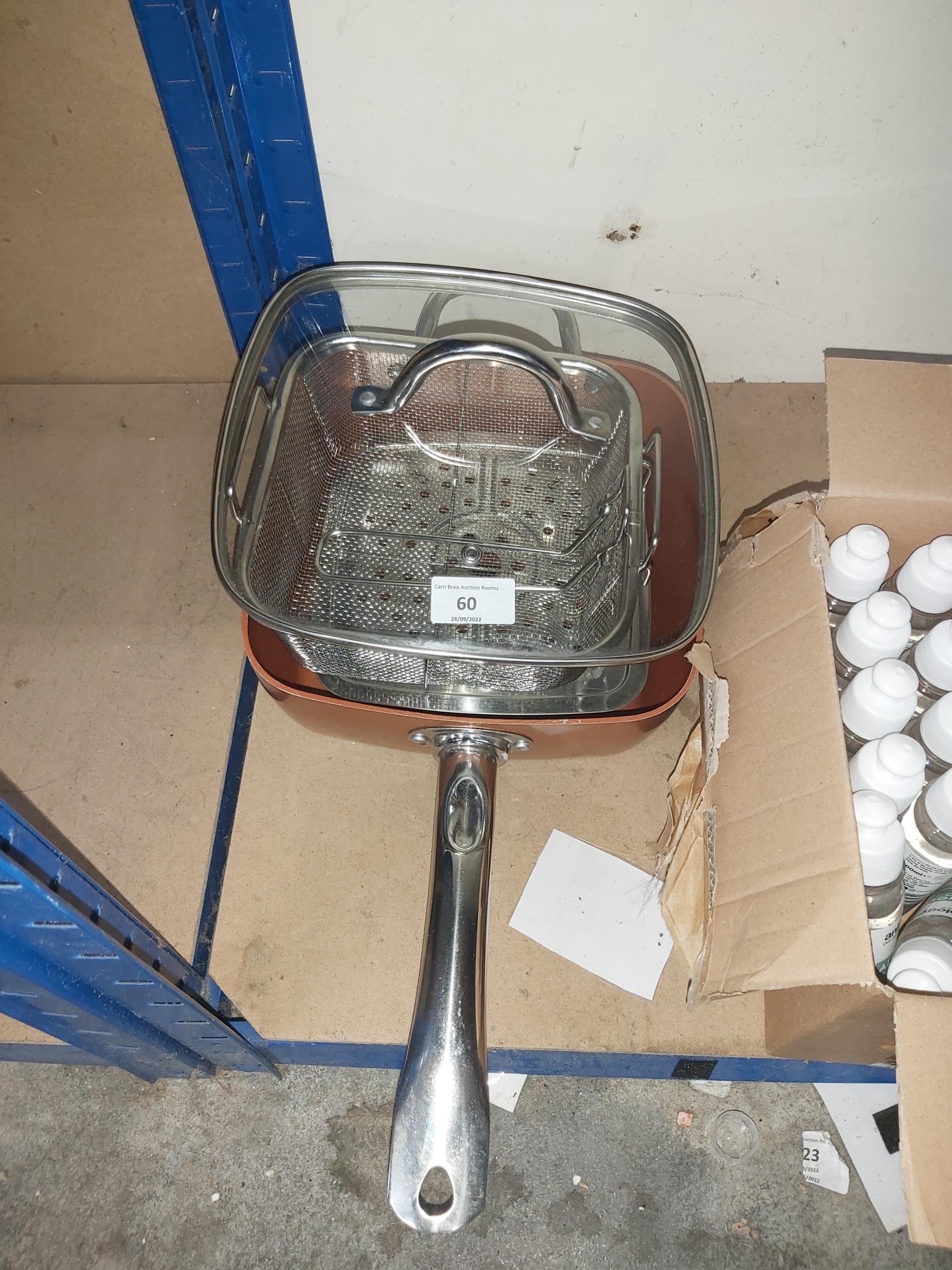 metal frying pan with glass lid