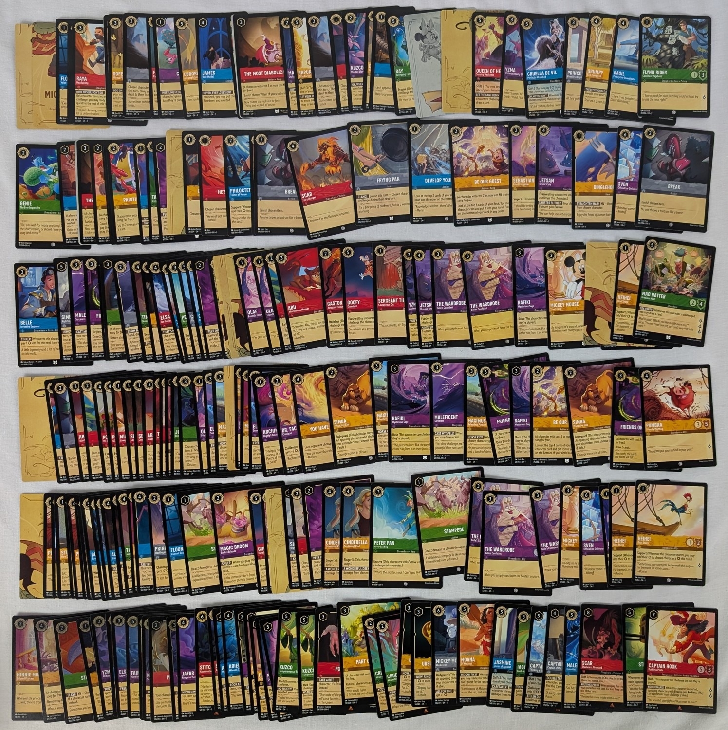220 Disney Lorcana trading cards. Comprising cards from set 1 (The First Chapter). Including 29 Rares and 13 Foil Holographic cards.