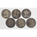 GB Sixpences (6) early milled: 1697 late harp, large crowns,...