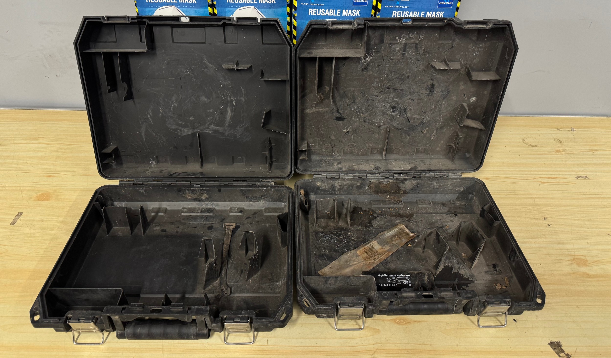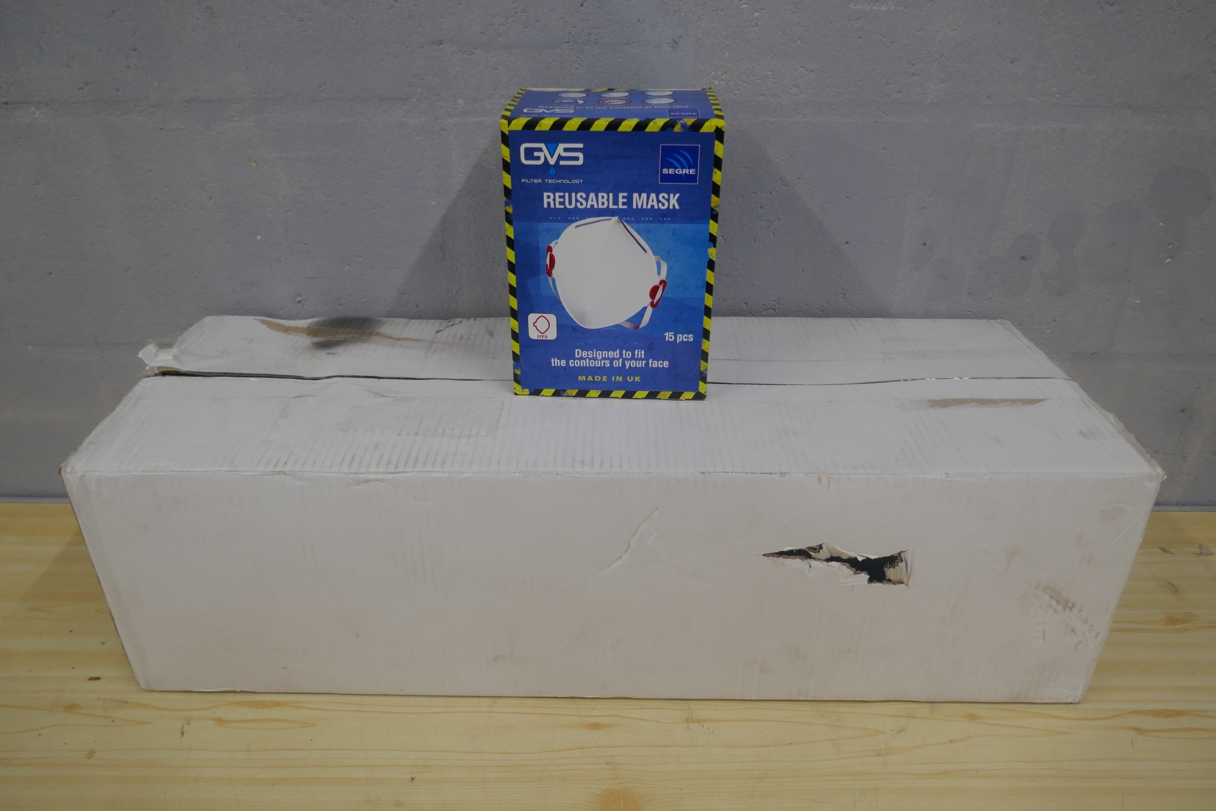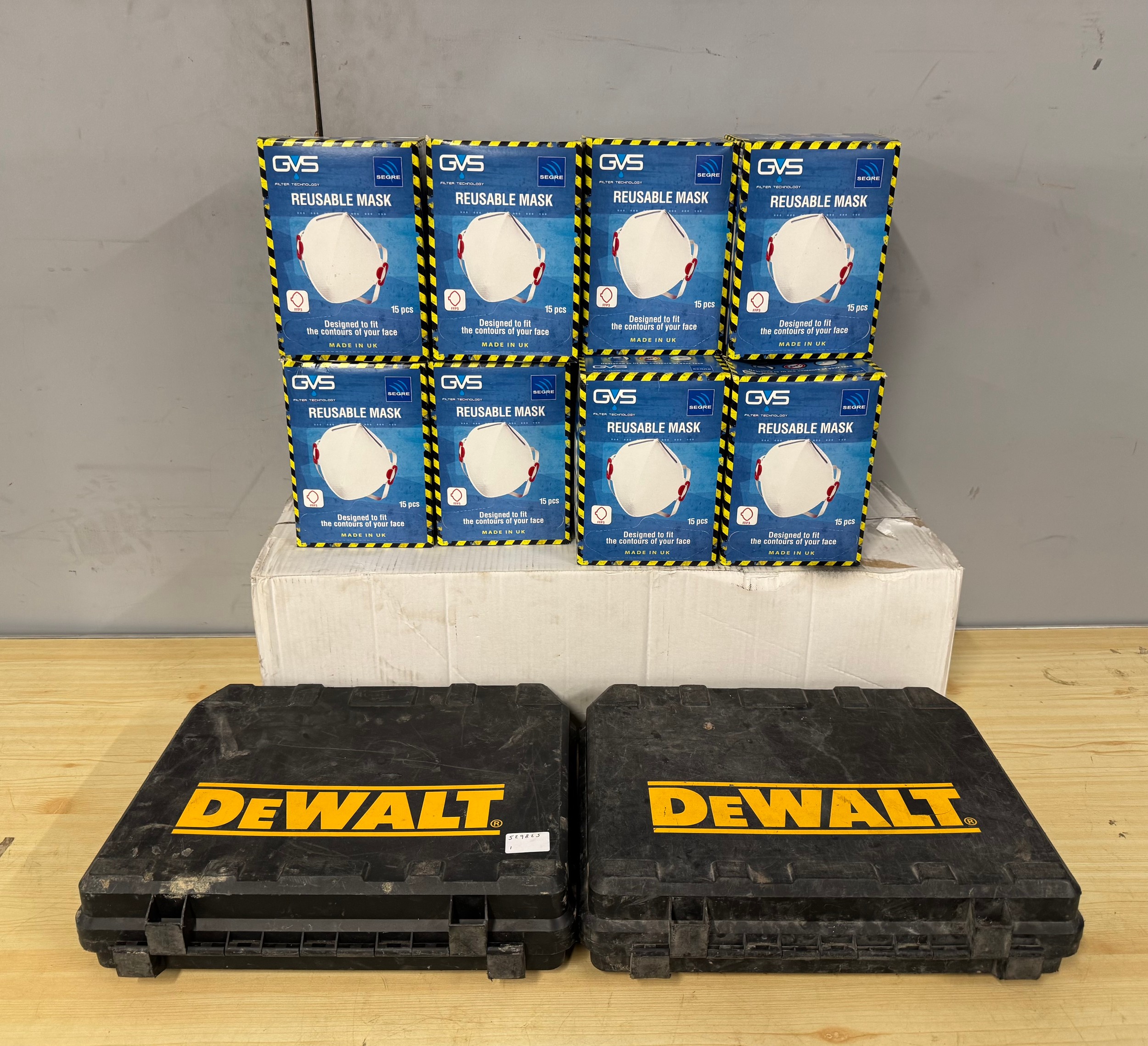 2 empty DeWalt tool cases and 20 boxes of Segre-GVS filter technology re-usable masks