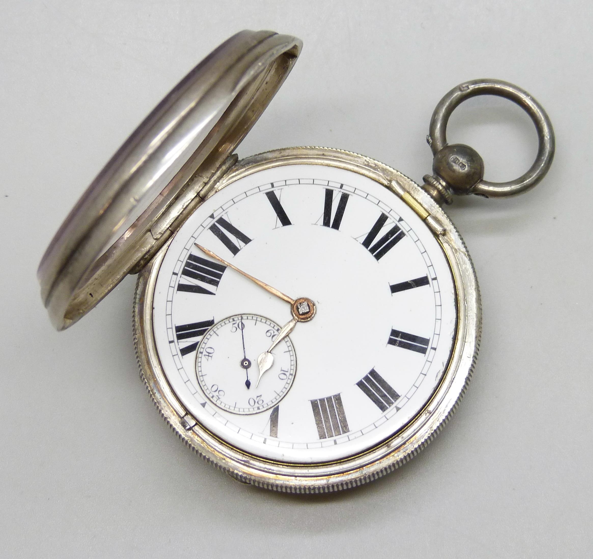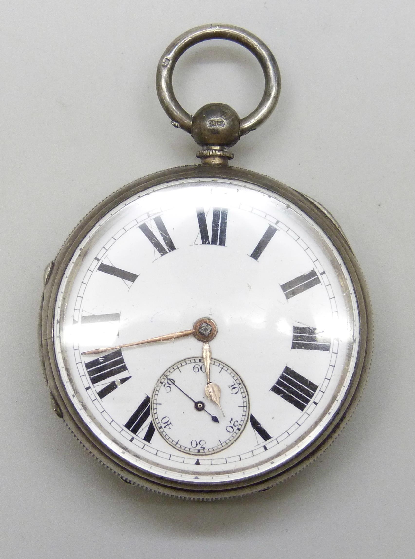 A silver open face pocket watch, London, 1885, a/f