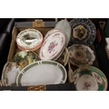 A TRAY OF CERAMIC CABINET PLATES TO INCLUDE A HAND PAINTED ANTIQUE COALPORT EXAMPLE, WEDGWOOD ETC.