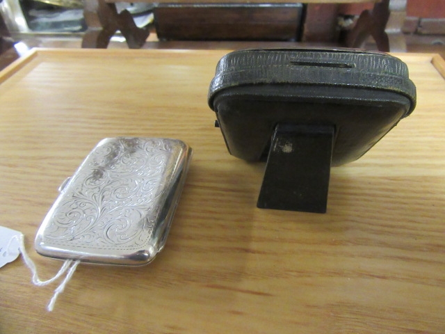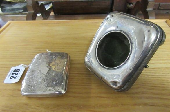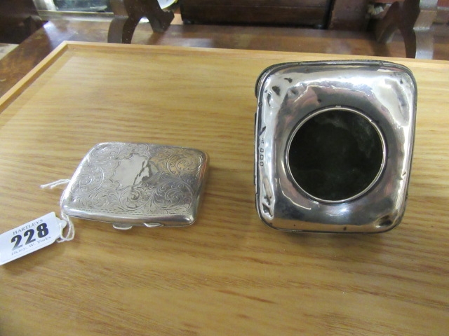 SILVER CIGARETTE CASE 1OZ 19DWT AND A SILVER MOUNTED WATCH CASE