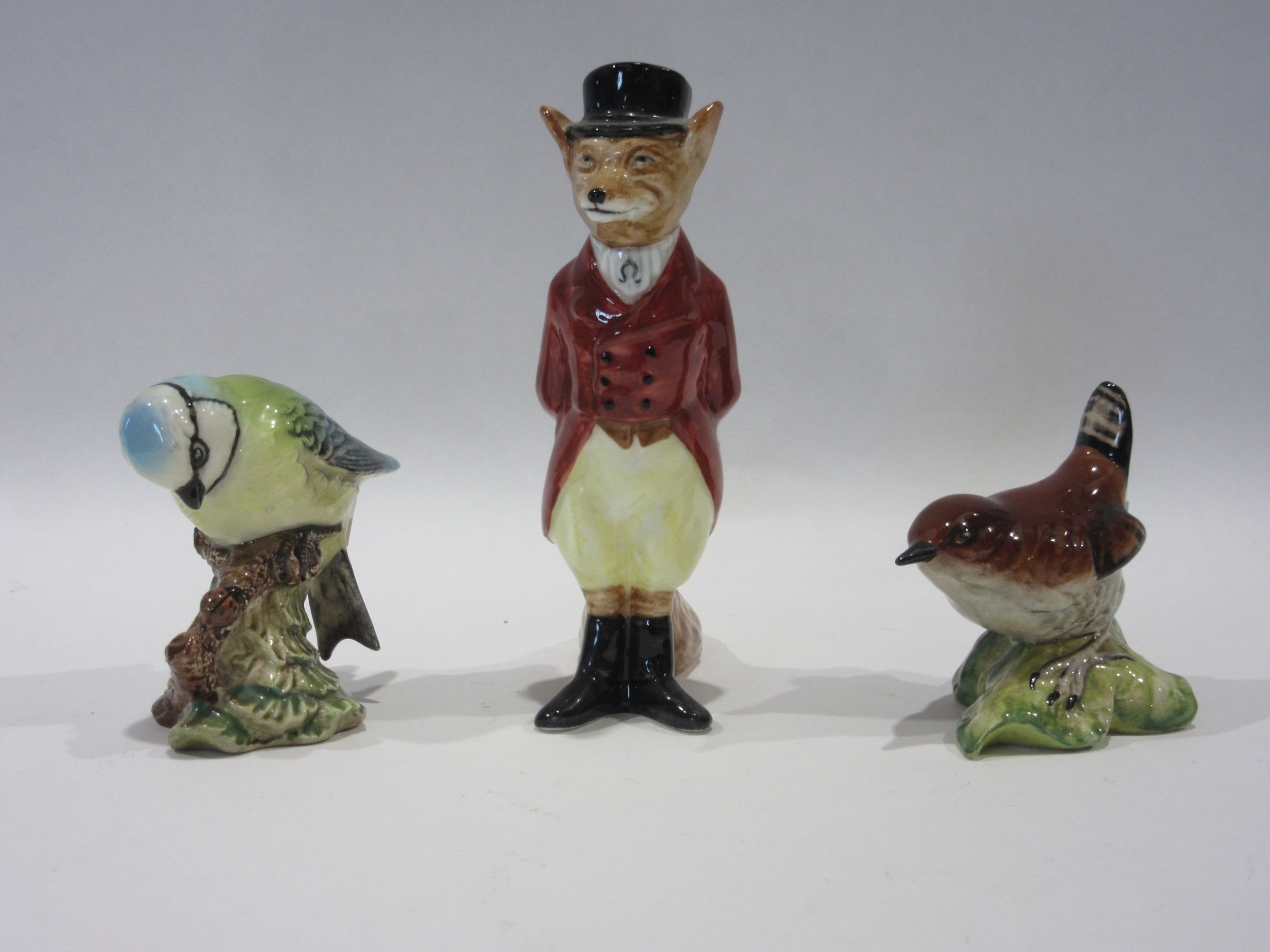 A Royal Doulton fox figure together with a Beswick Wren and Blue Tit (3)