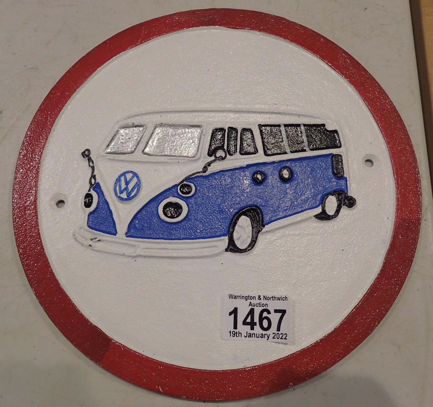 Cast iron VW camper van sign, D: 25 cm. P&P Group 2 (£18+VAT for the first lot and £3+VAT for subsequent lots)