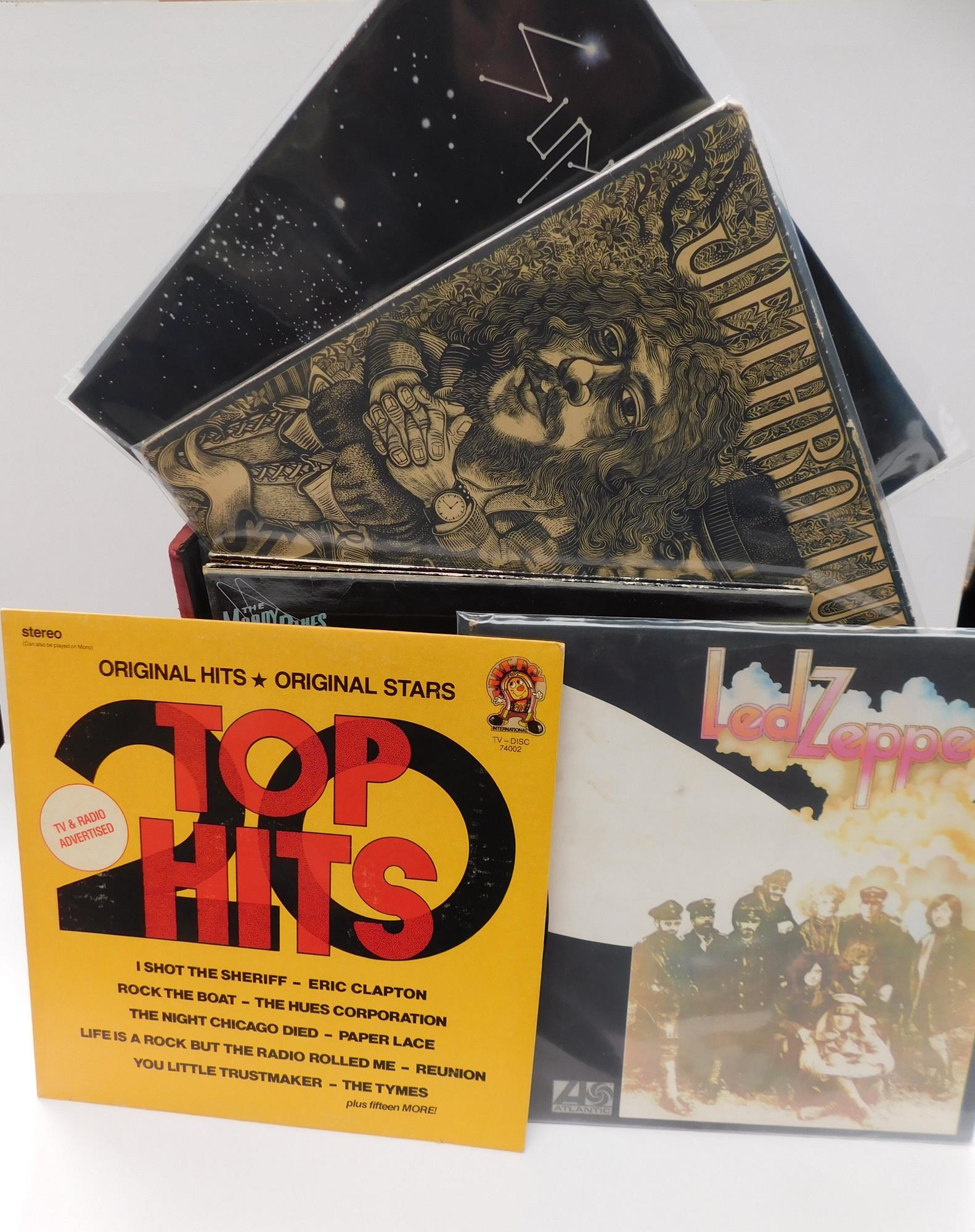 Box of collectable vinyl LP's inc Led Zeppelin, Jethro Tull, Super Tramp, ACDC, Ultravox