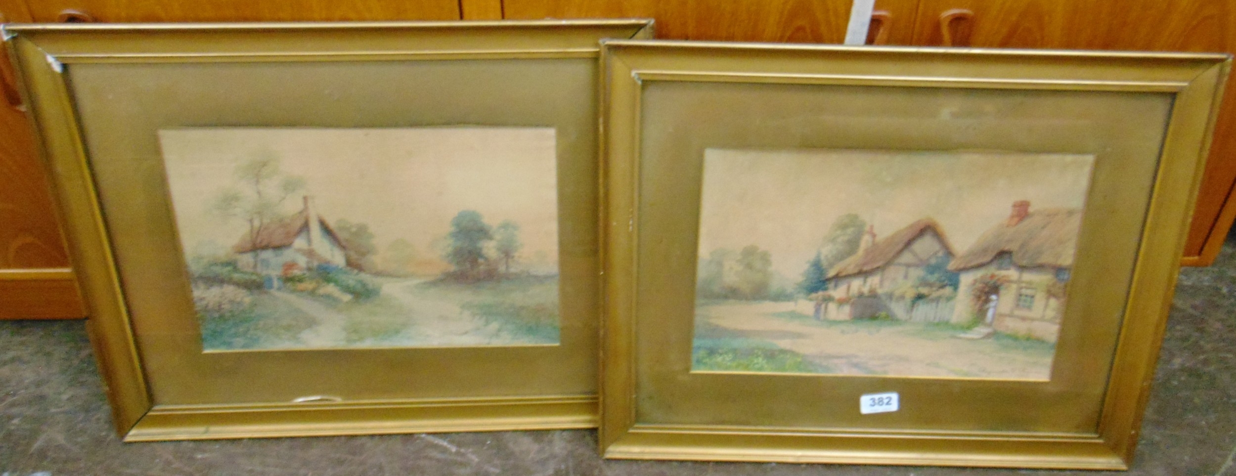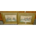 R. Preston, pair of framed and glazed watercolours, country cottages, each signed lower right, 9.5 x 14.5".