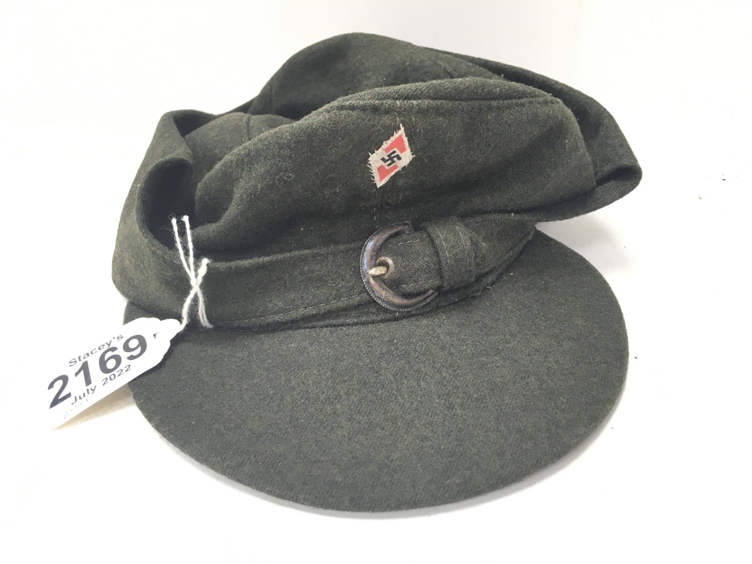 WW2 German Hitler Youth Black Winter Service Cap. A very original example with hand sewn HJ Diamond badge. All passes the black light test with no problem.