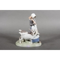 Royal Copenhagen porcelain figure group of a lady with two goats, number 694, 23cm tall.