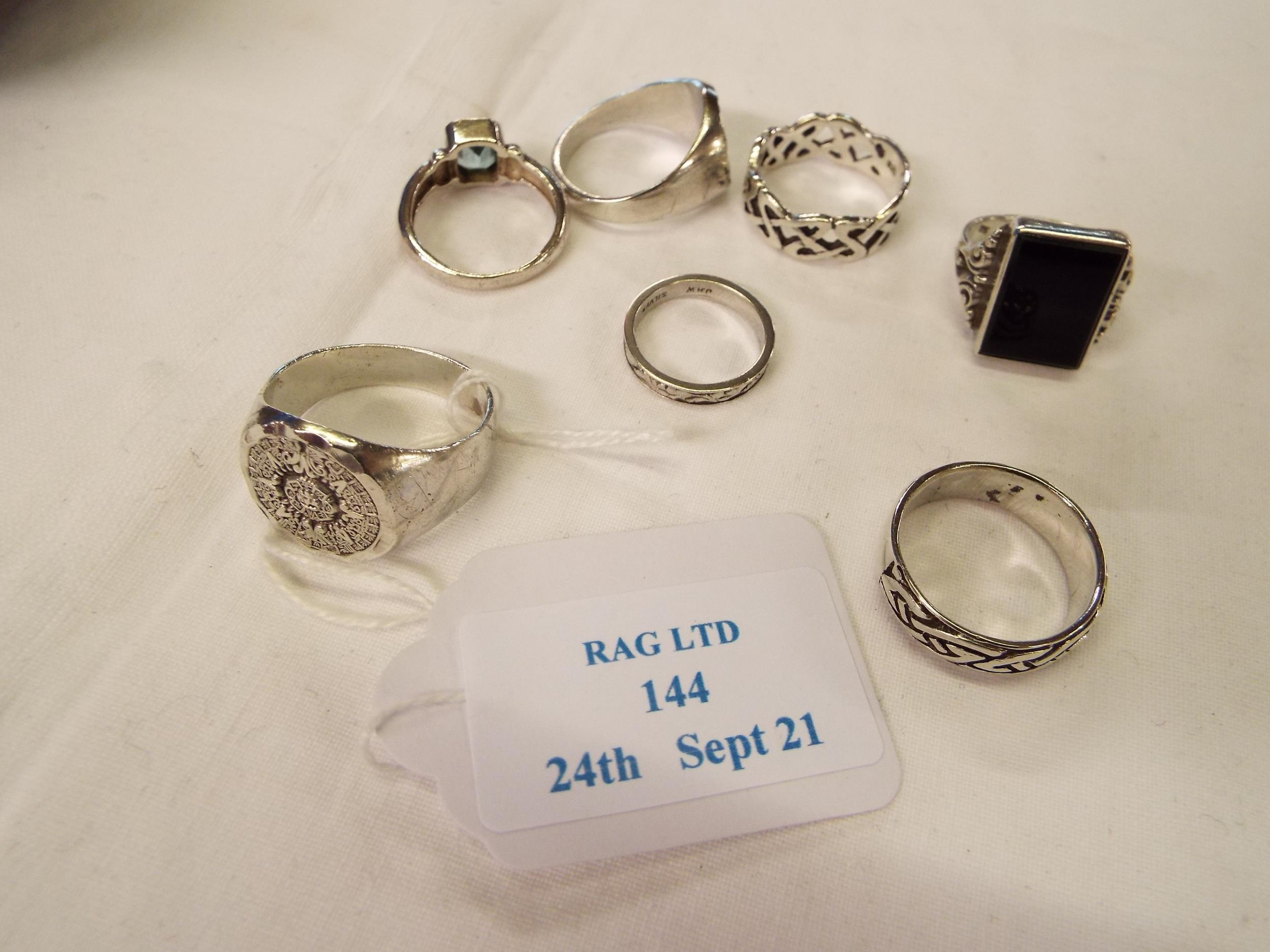 A mixed selection of seven assorted silver rings