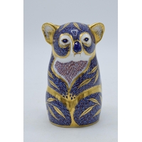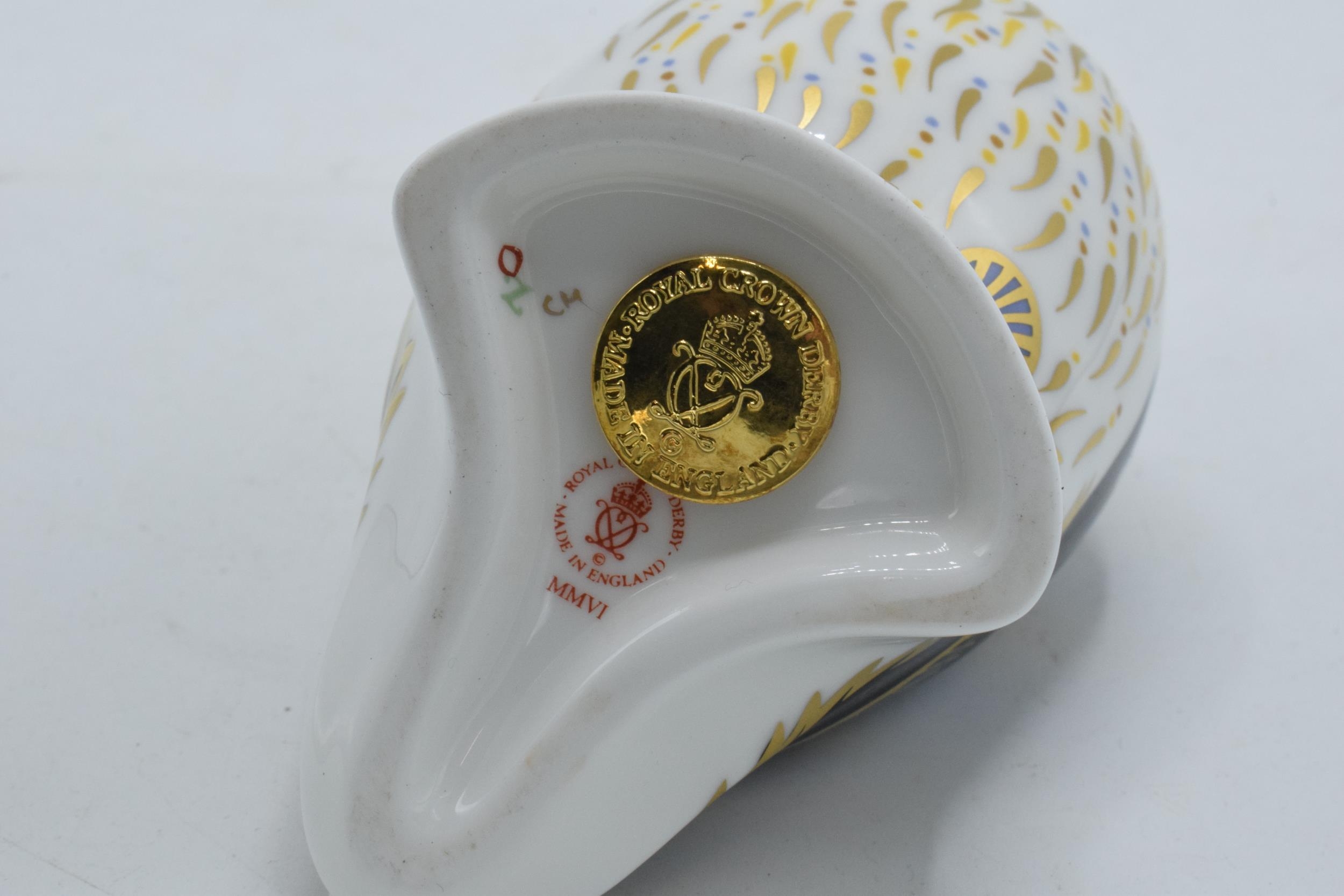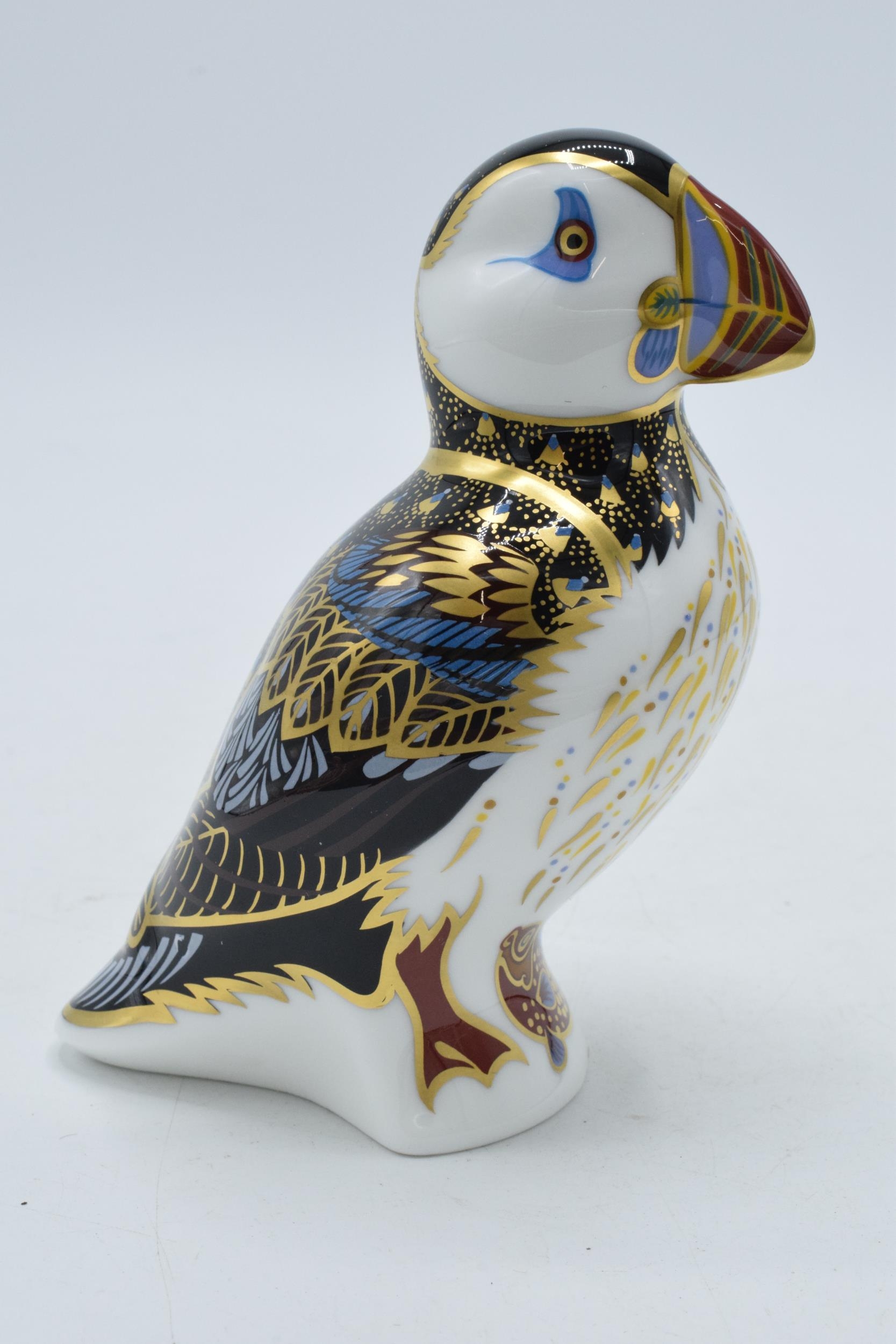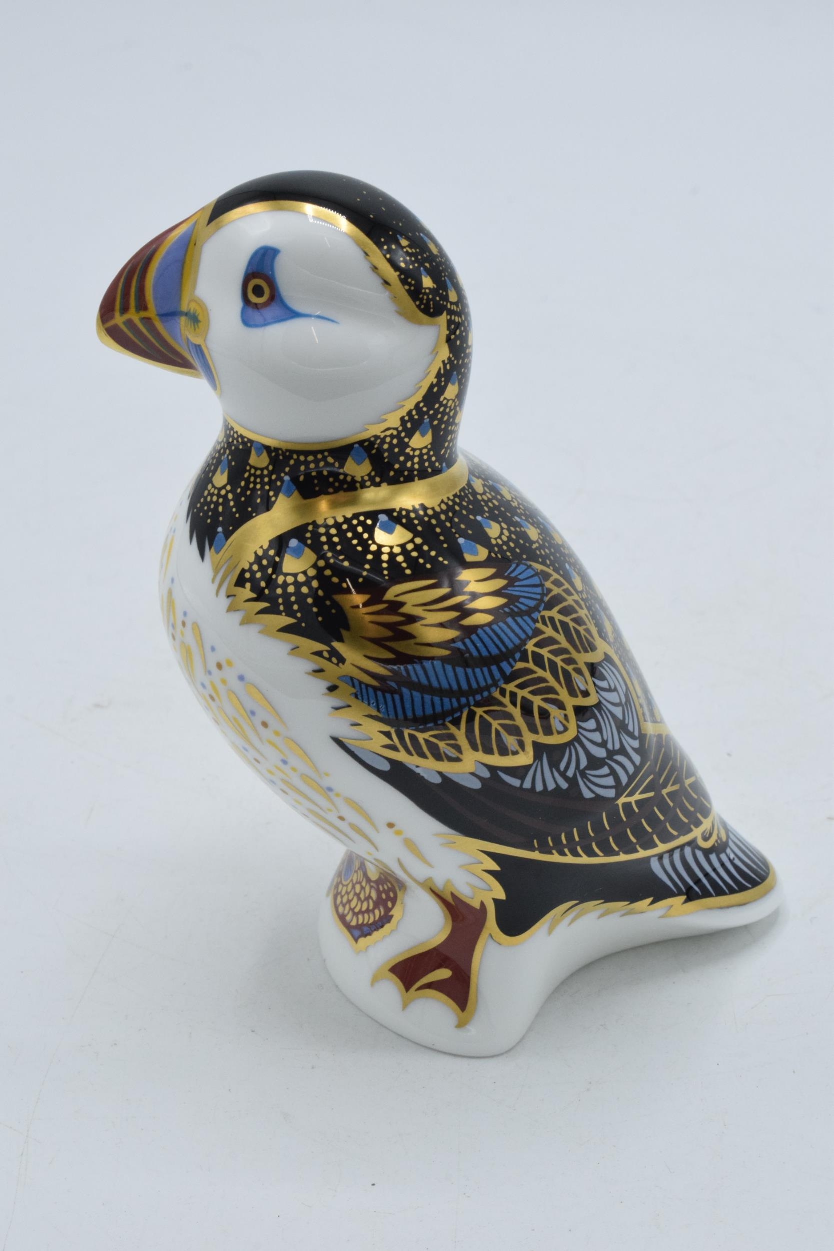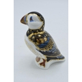 Royal Crown Derby paperweight, Puffin, gold stopper and red Royal Crown Derby stamp on the base, boxed.