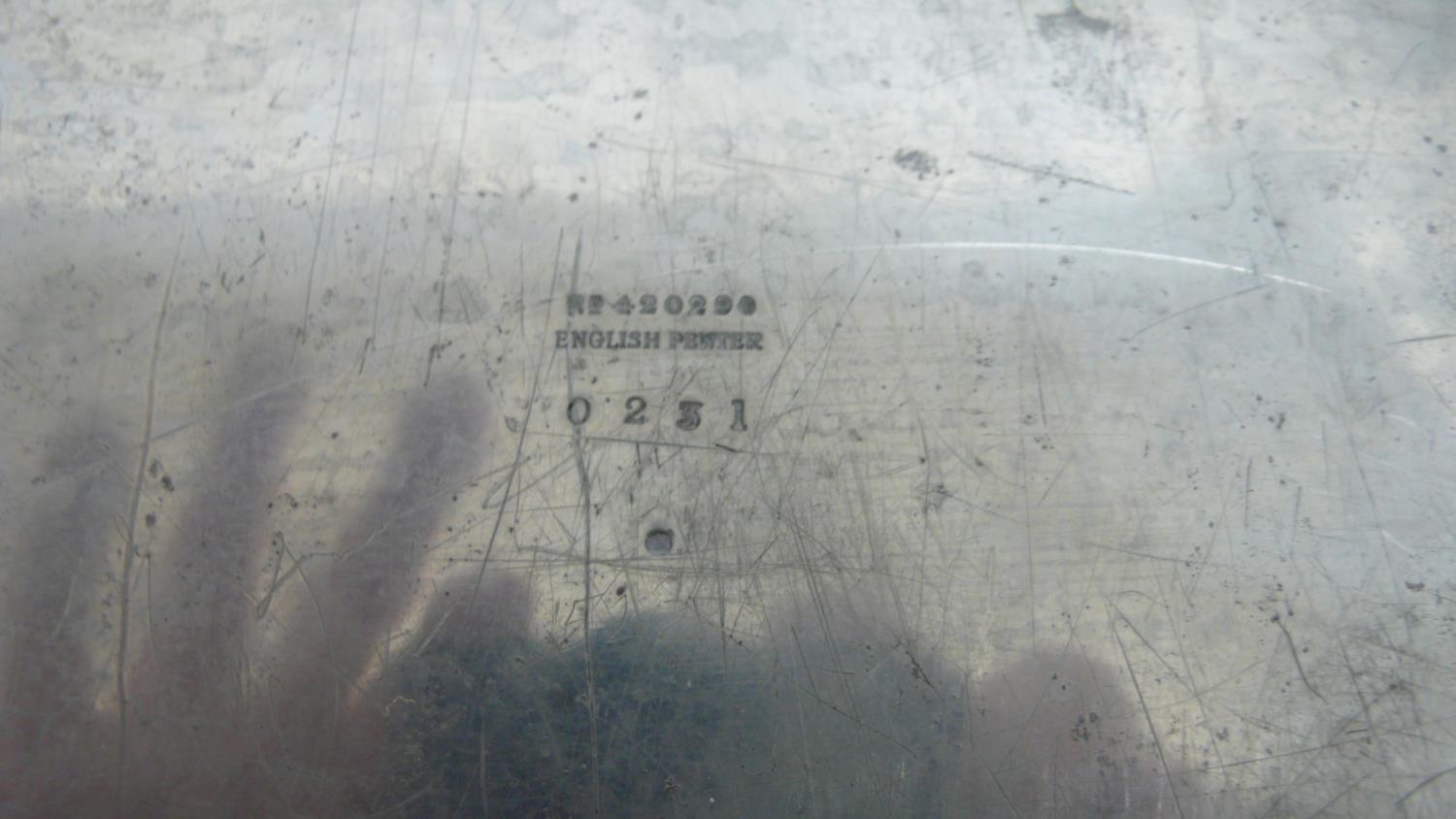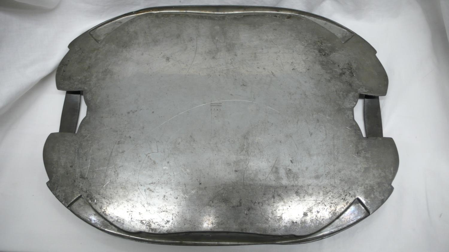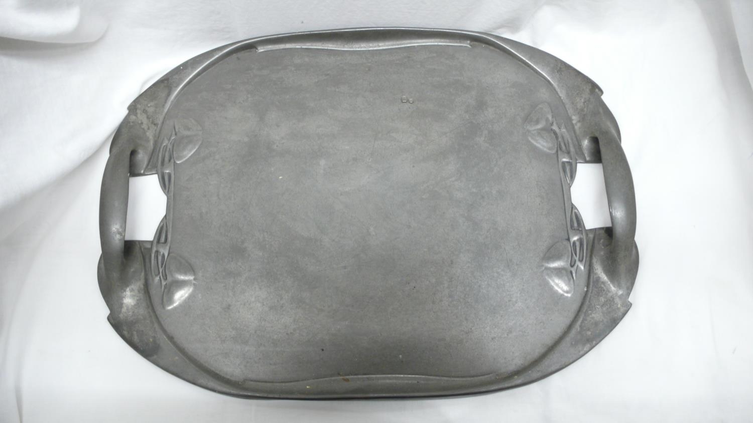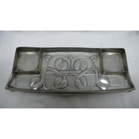Archibald Knox for Liberty & Co. English Pewter five piece tea service, entwined leaf design, circa 1901, No. 0231, length of tray 48 cms