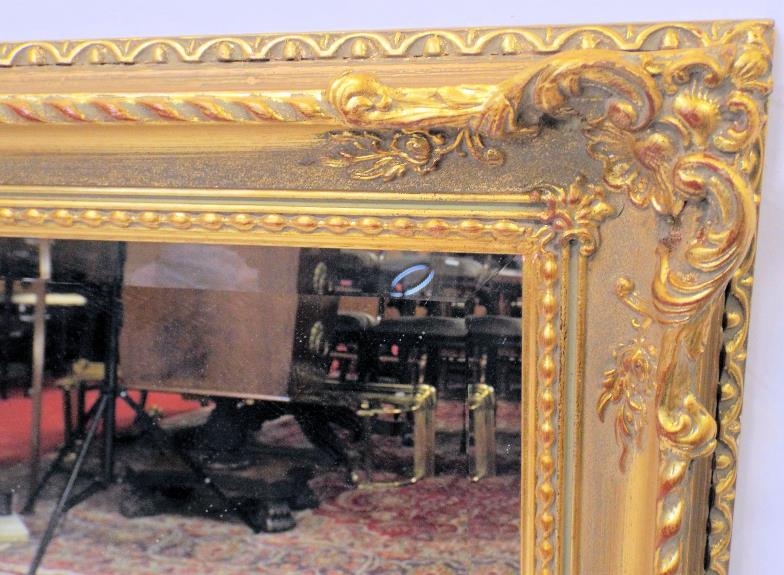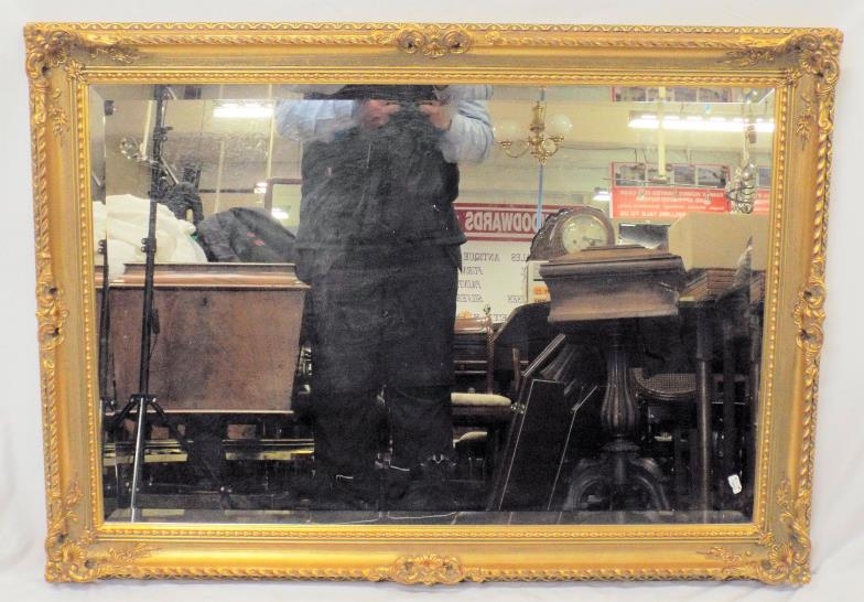 Bevelled glass wall mirror in ornate foliate and scroll decorated frame