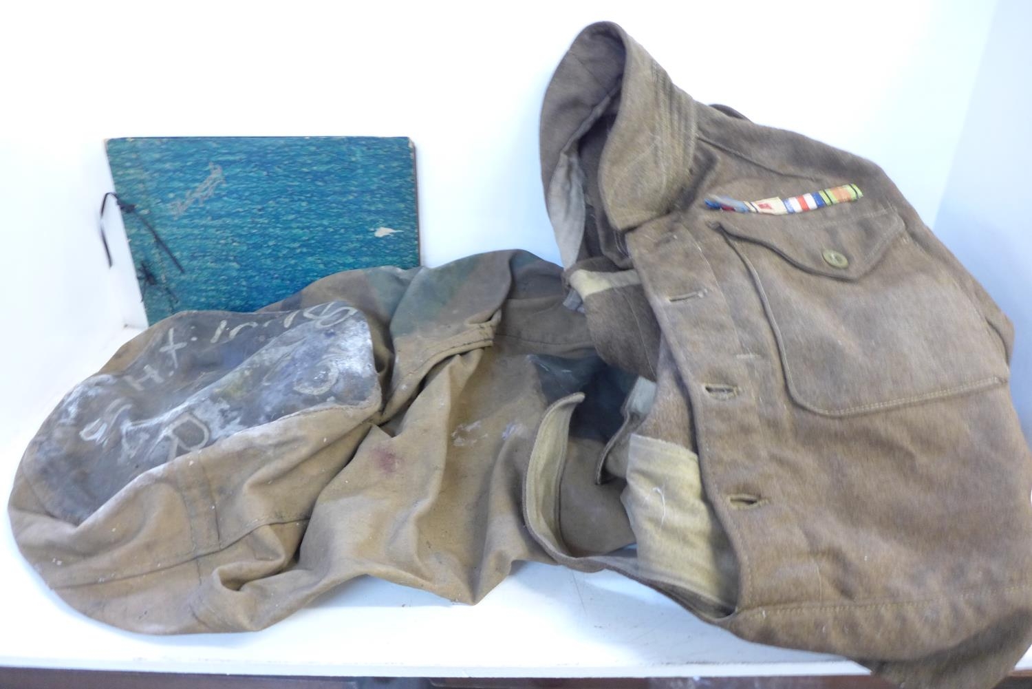 An Army uniform and kit bag and an album of phographs taken whilst on active service in North Africa