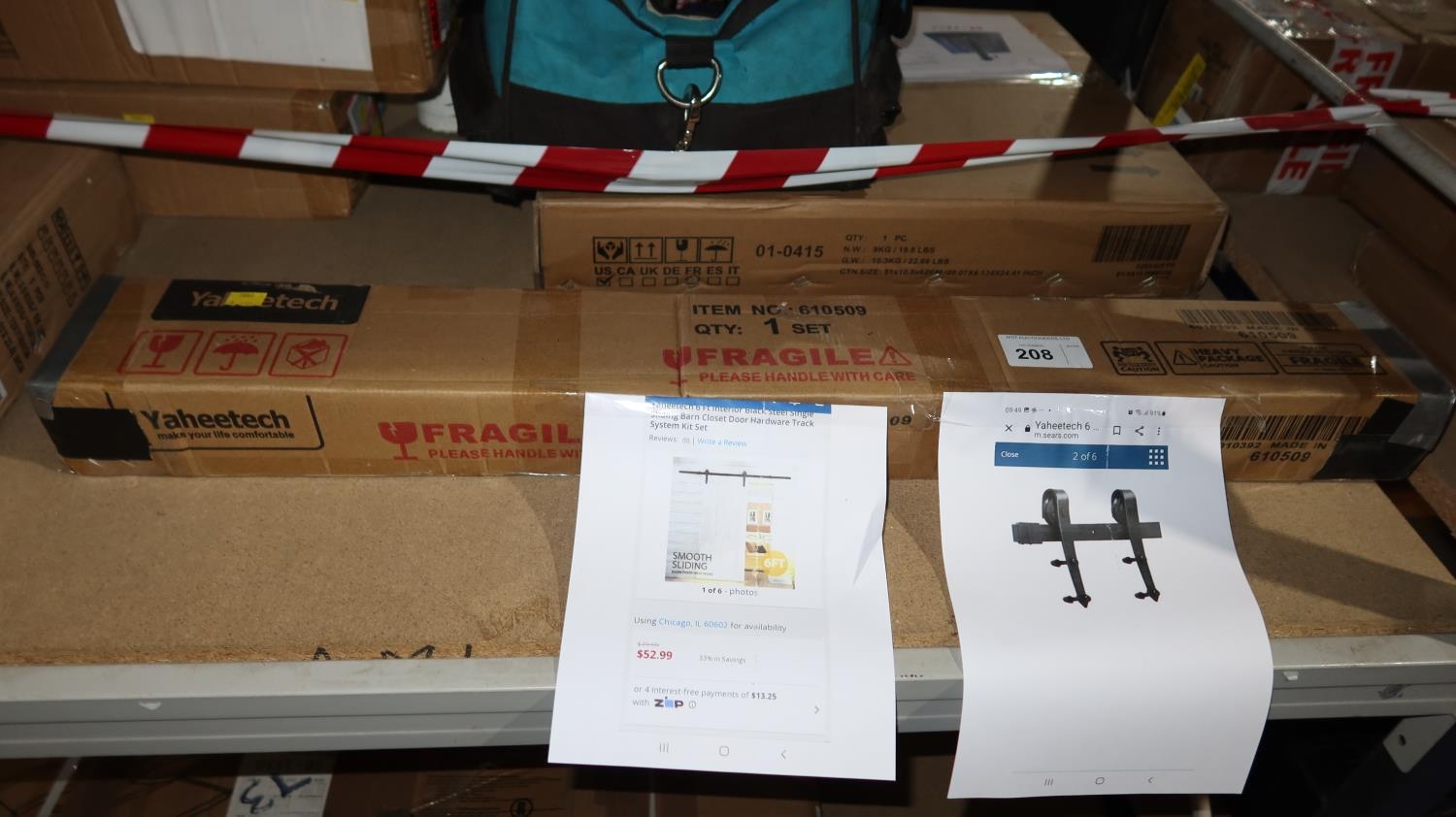 A Yaheetech 6ft interior black steel single sliding barn closet door hardware track system kit set RRP region of £40 - Boxed