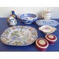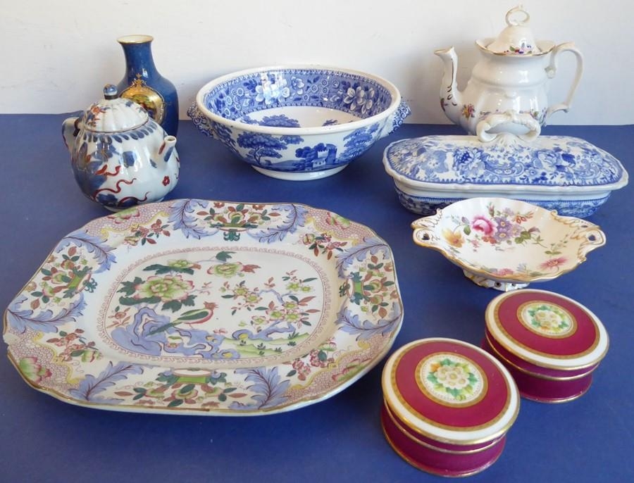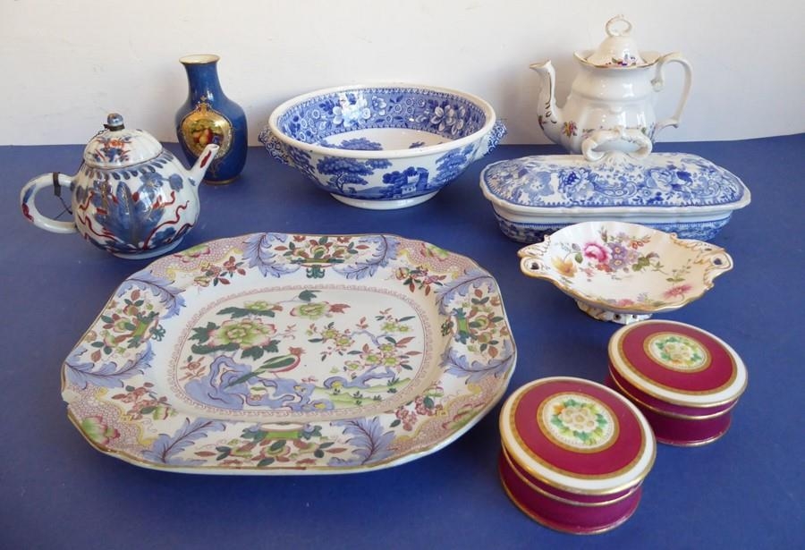 Various ceramics,19th century and modern; to include a 19th century Japanese porcelain bachelor's teapot modelled as a melon and hand decorated in the Imari palette