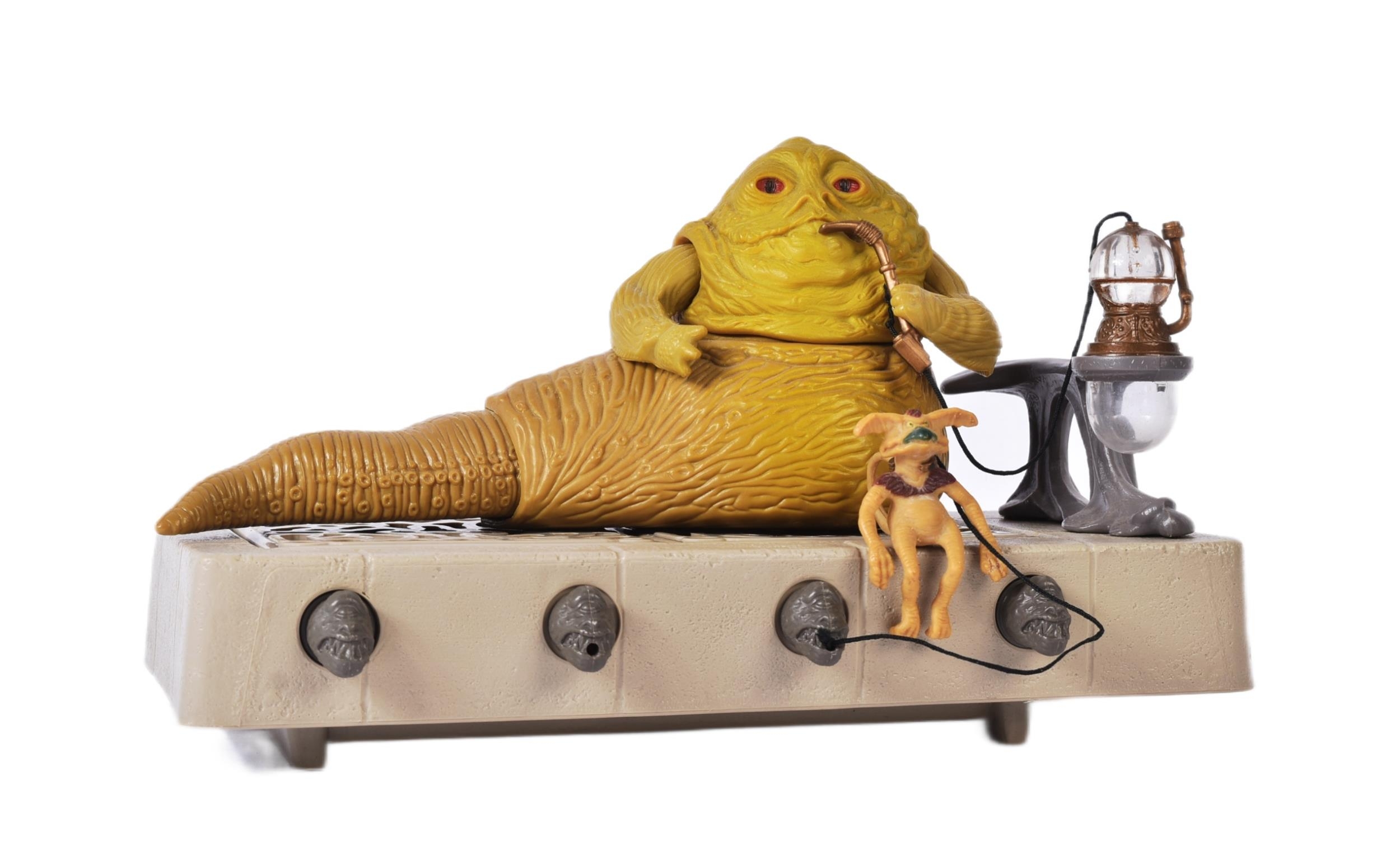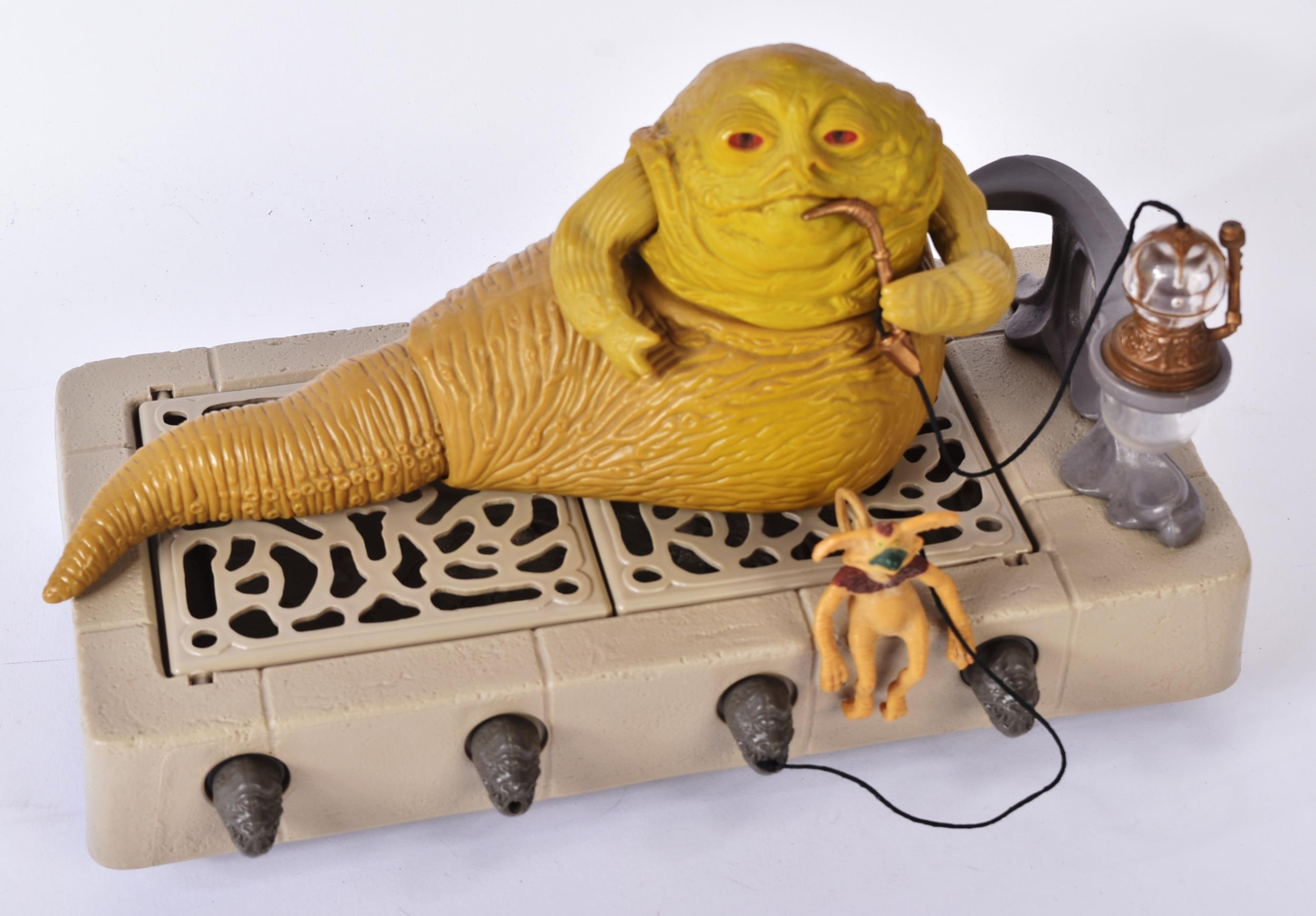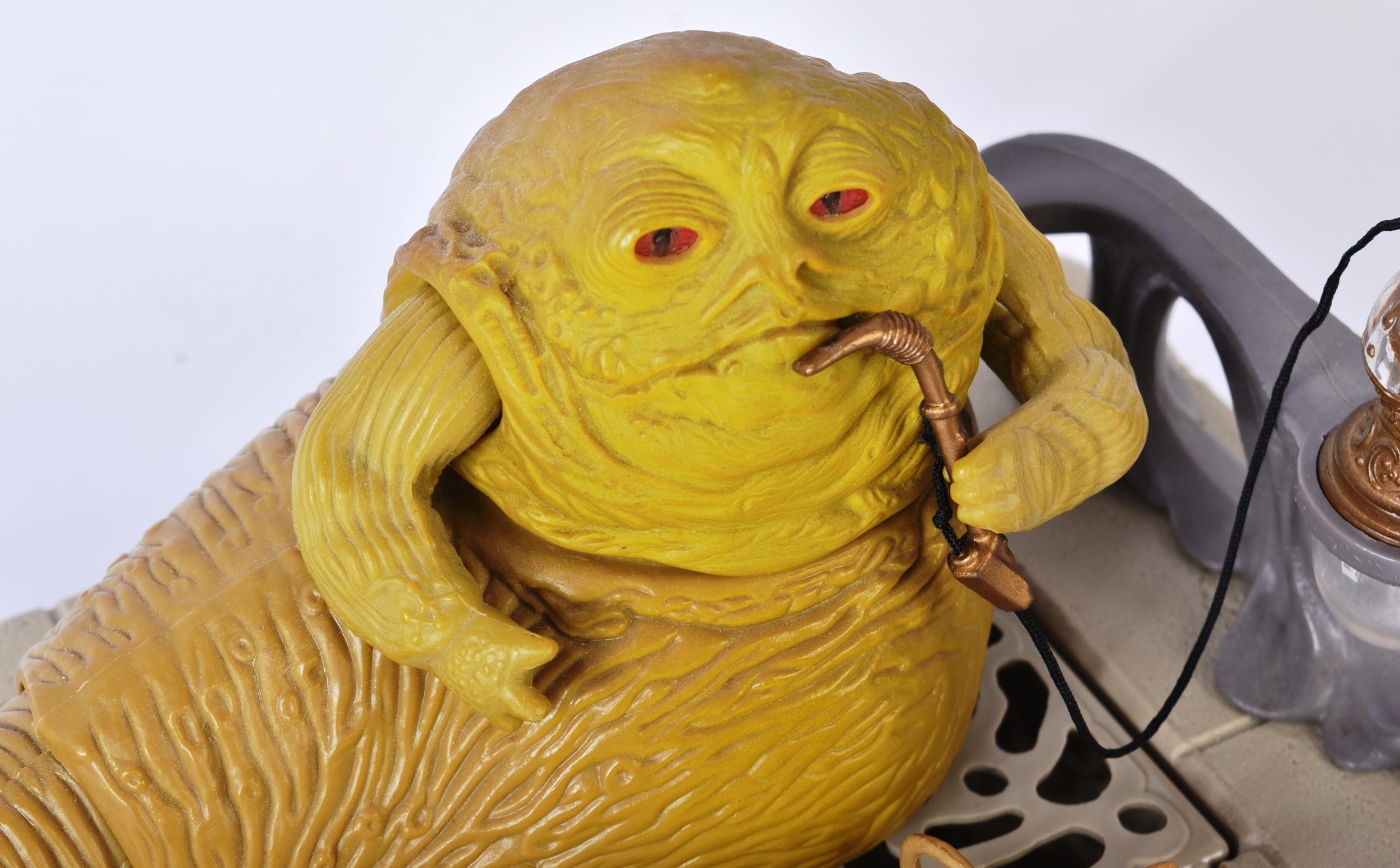 Star Wars - an original vintage 1980s Kenner / Palitoy made action figure playset ' Jabba The Hutt Action Playset '. 100% complete, including the pipe, neck collar, Salacious Crumb figure and Jabba figure. Unboxed.
