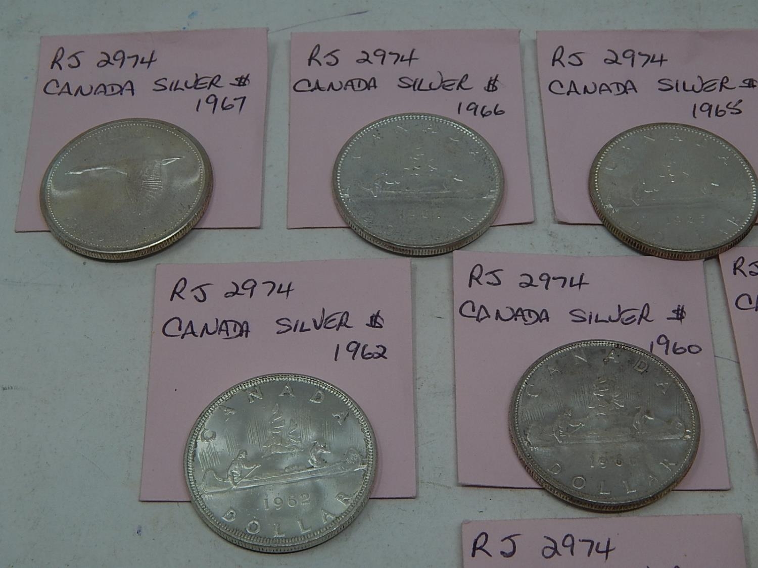 Collection of Canada Silver Dollars 1939, 1953, 1958, 1959, 1960, 1962, 1963, 1964, 1965, 1966 & 1967 all Extremely Fine or better