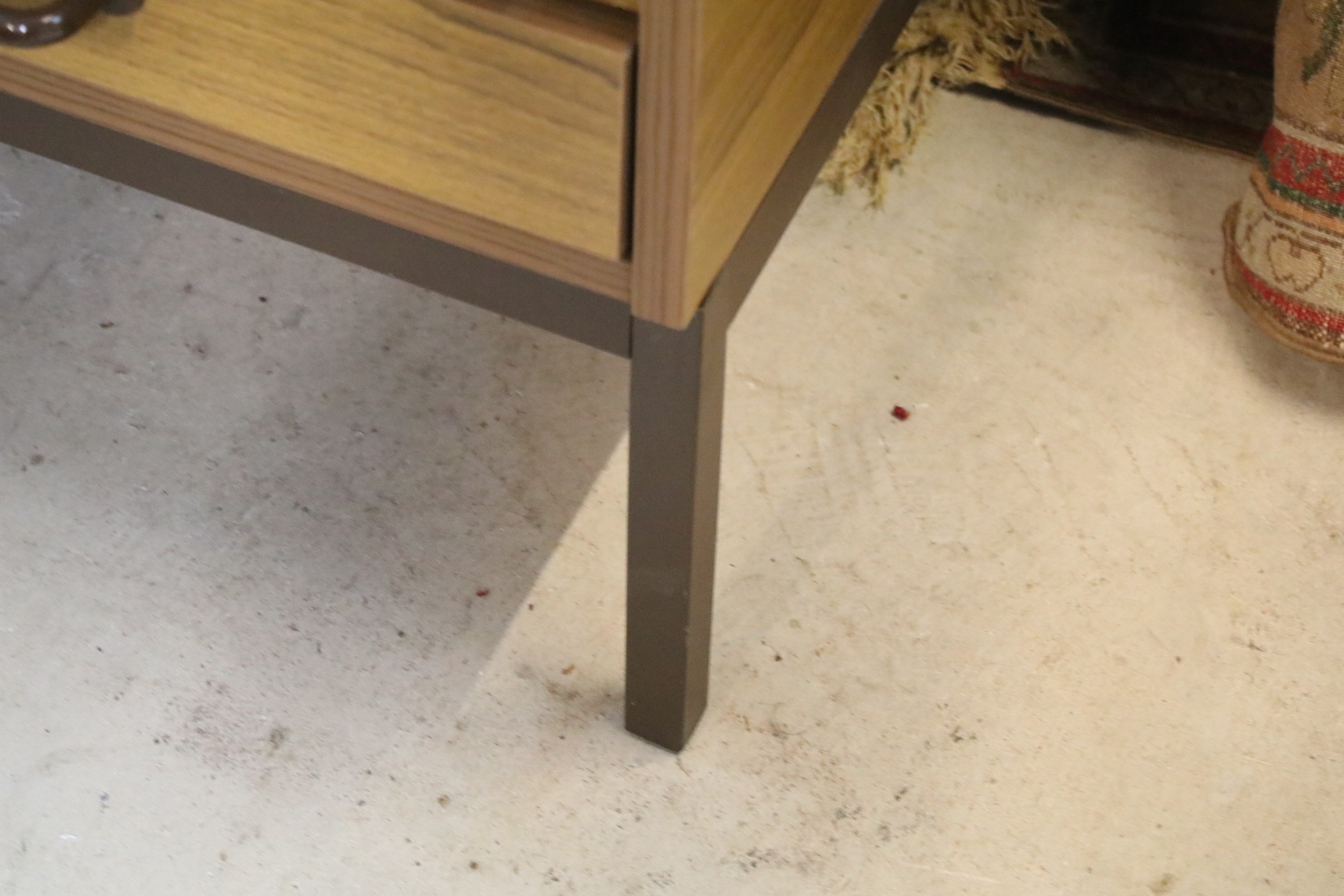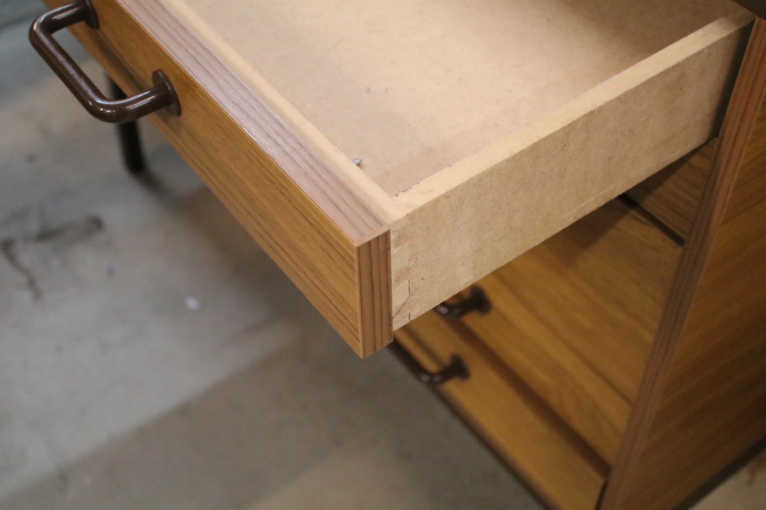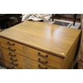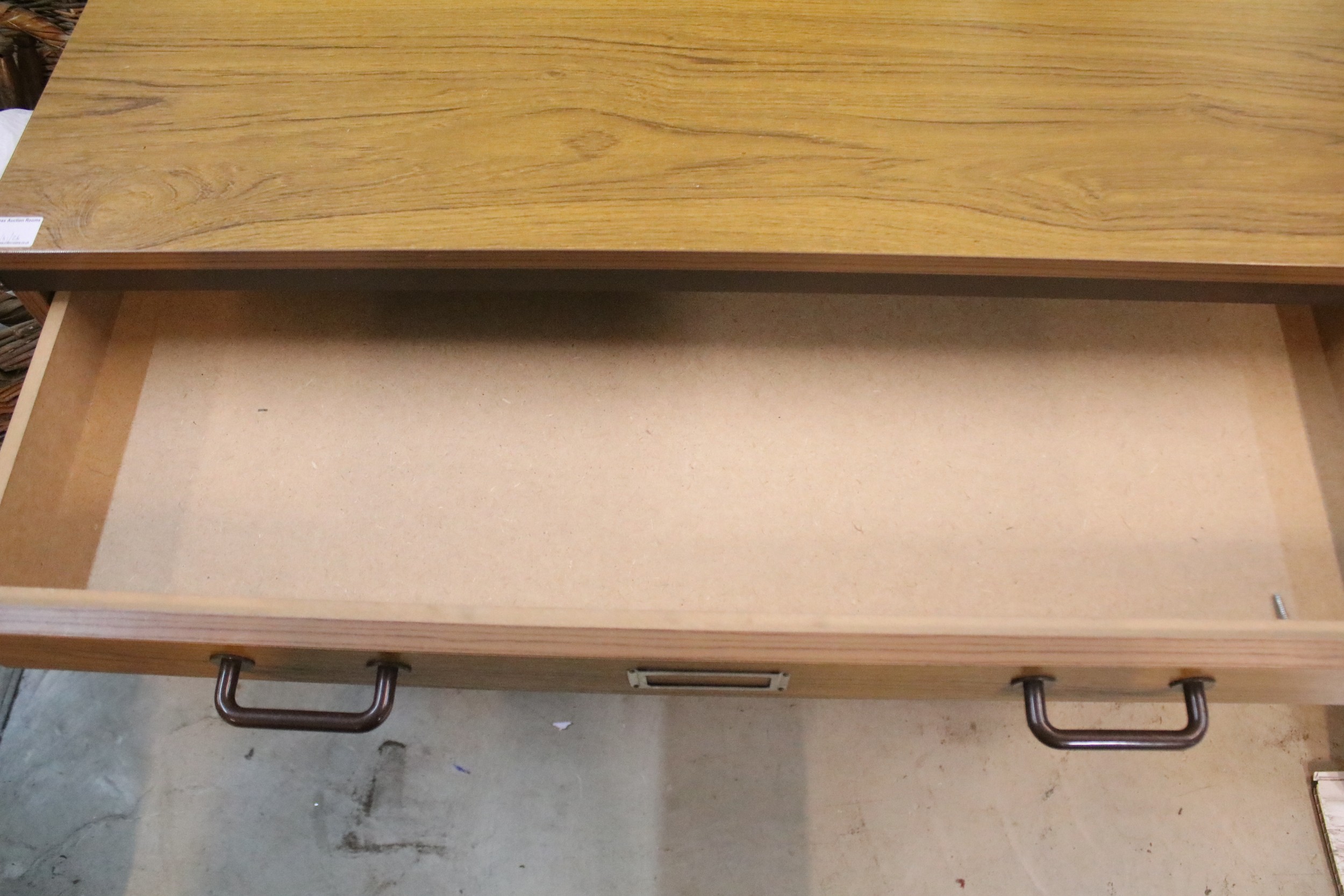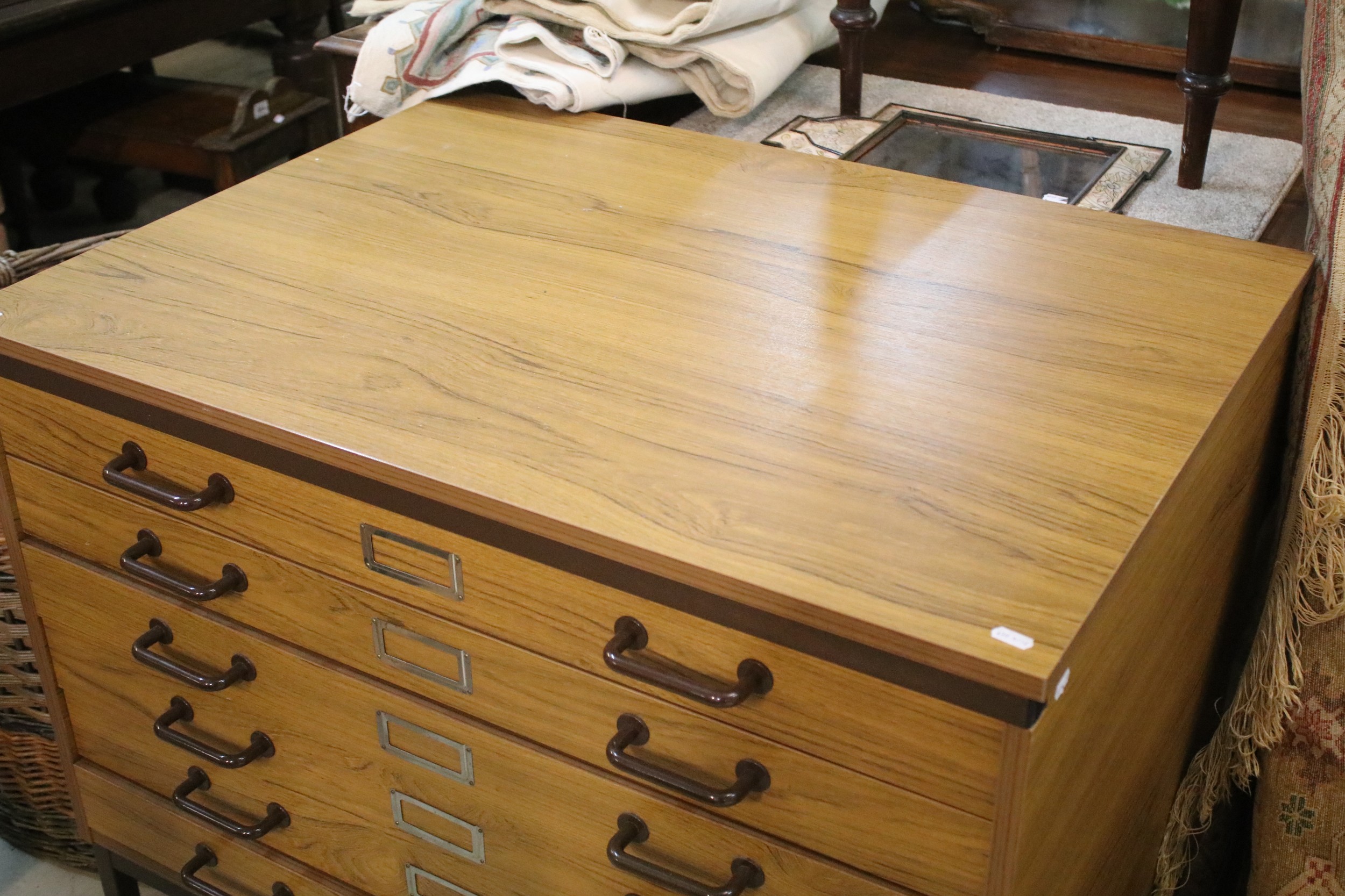 20th century industrial design plan chest, having six long drawers raised on metal legs, W 95cm x D 70cm x H 84cm