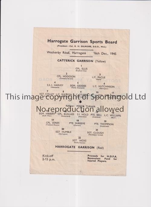 SERVICES FOOTBALL AT HARROGATE TOWN F.C. 1945 Single sheet programme for Catterick Garrison v Harrogate Garrison 16/12/1945, slightly creased. Generally good