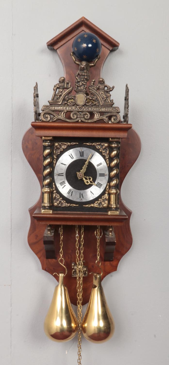 A Dutch wall clock. With brass weights and pendulum.