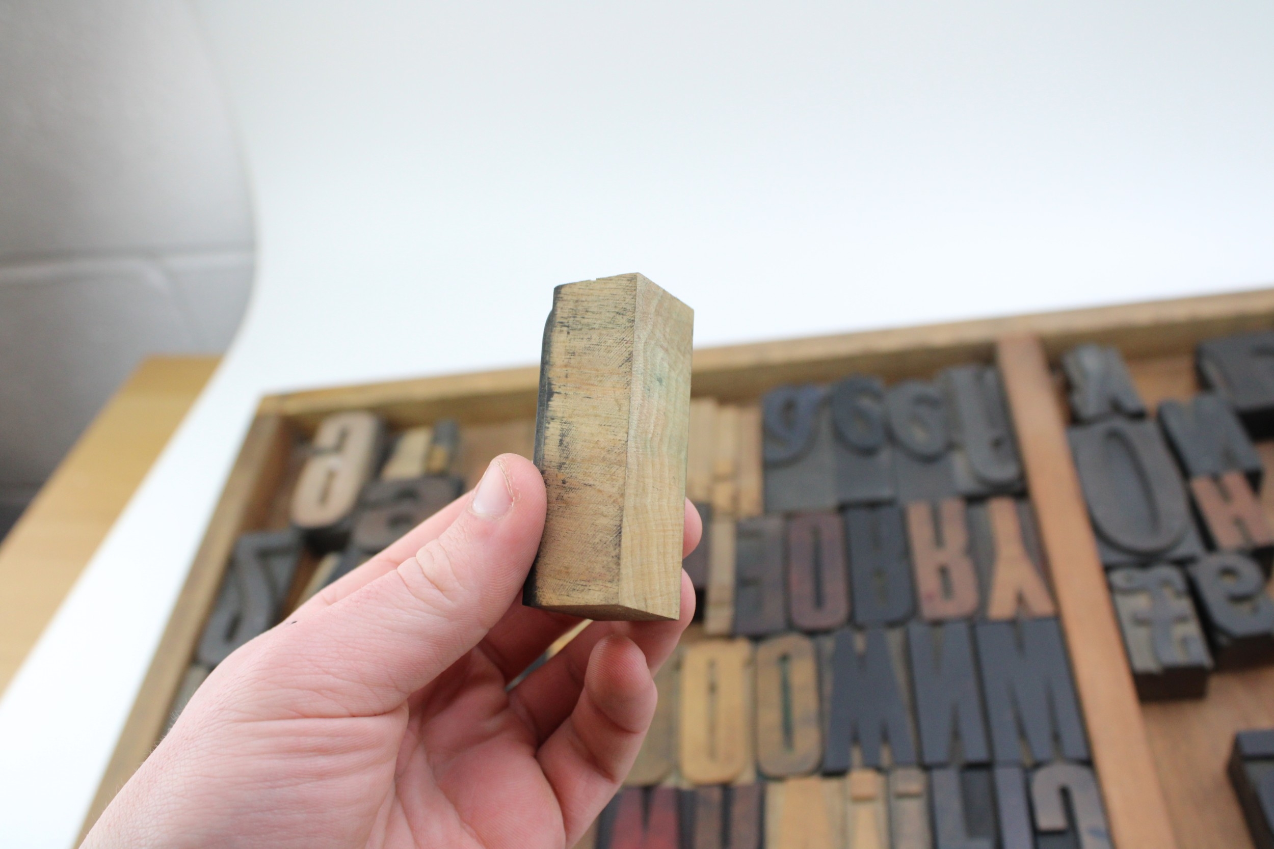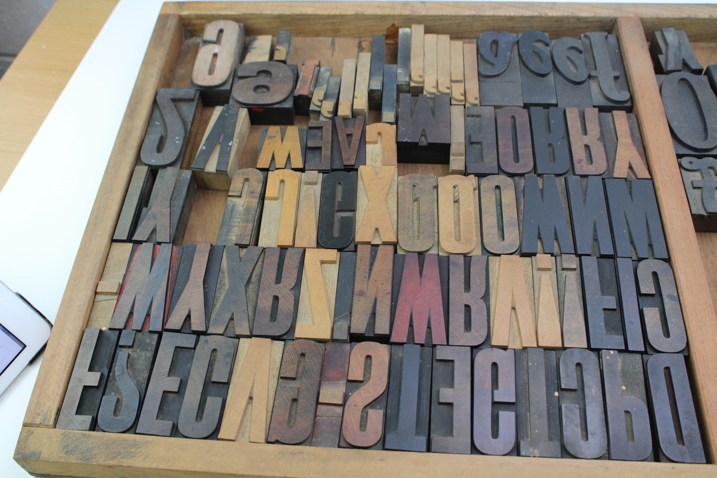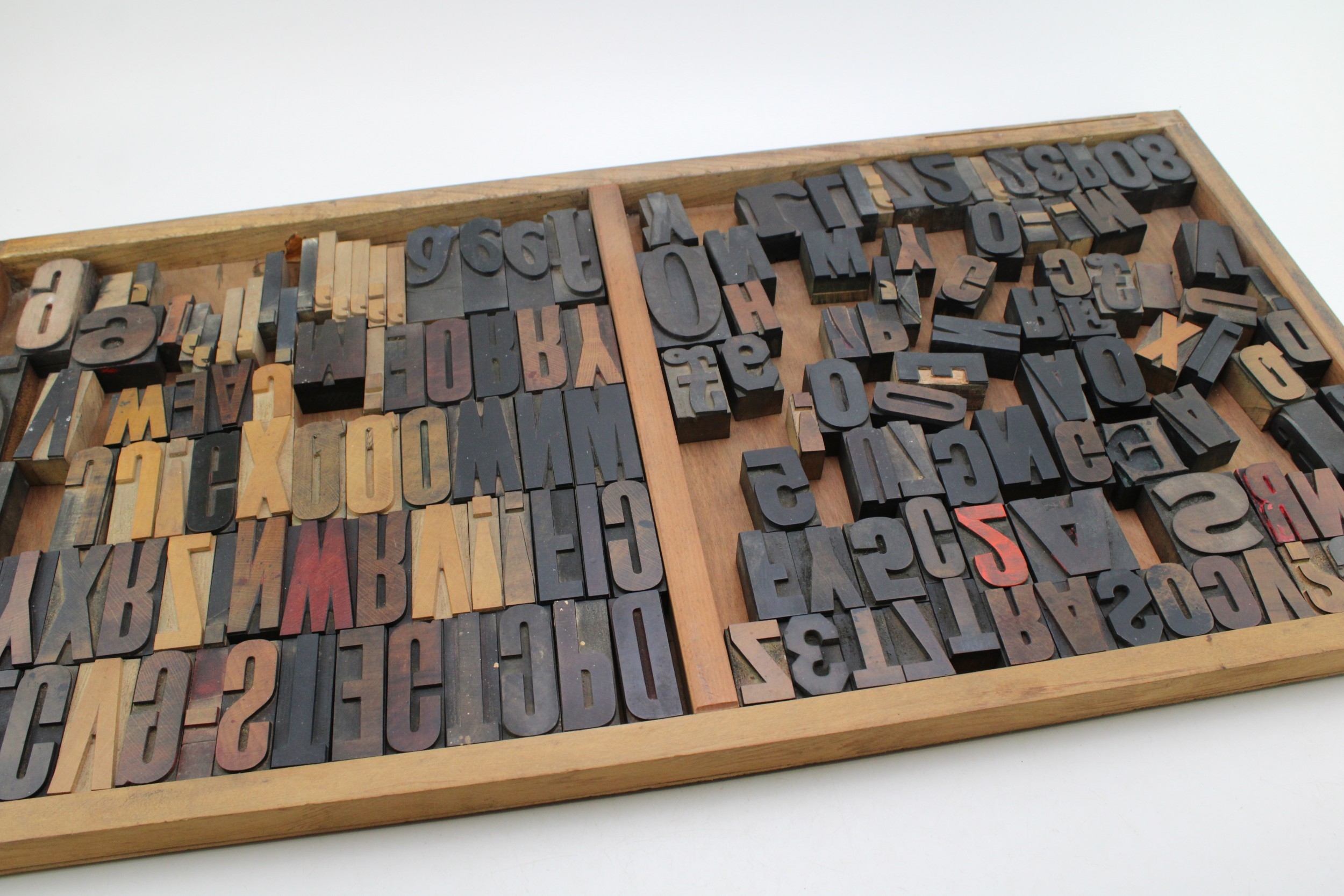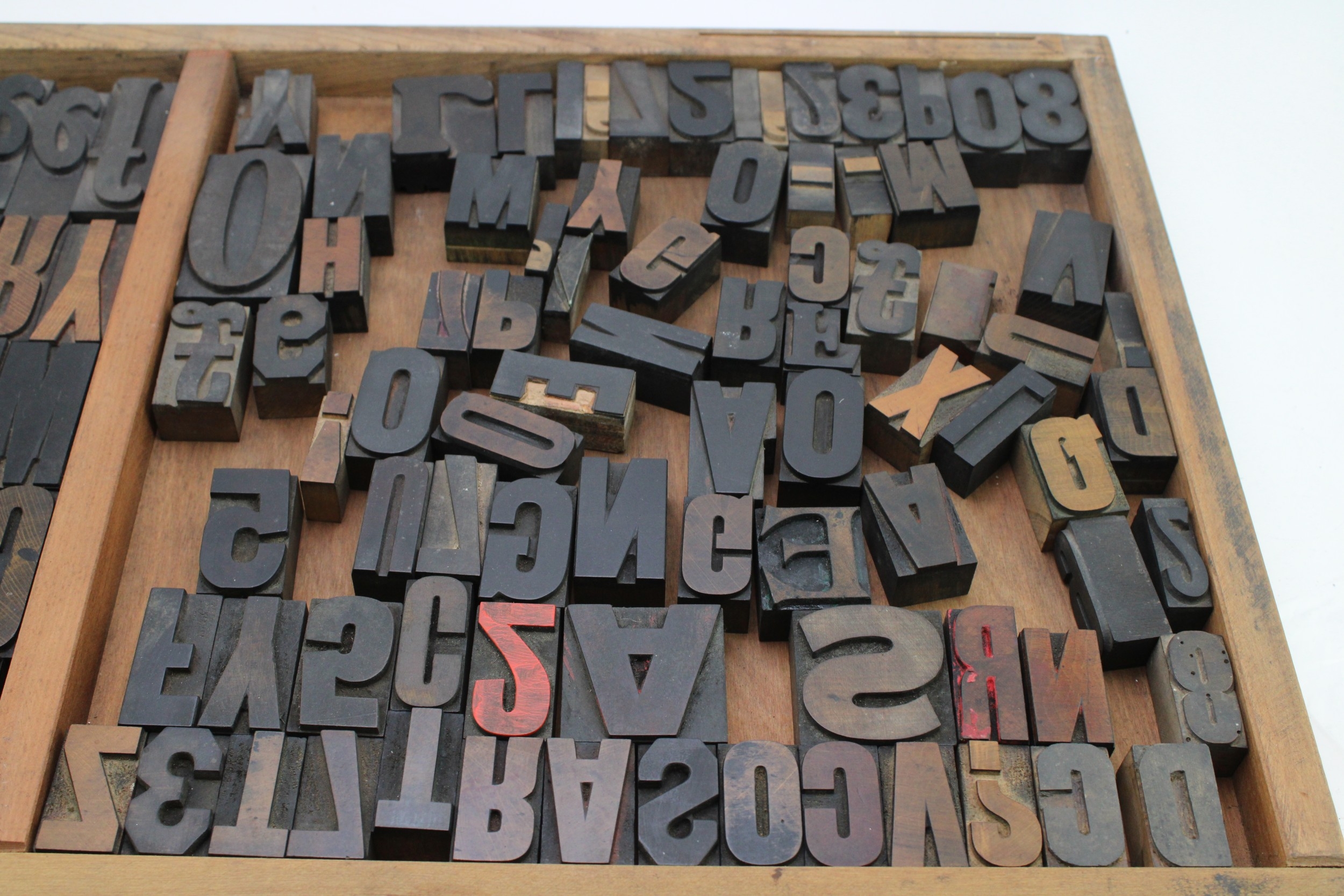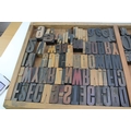 Vintage printers drawer complete with a number of printing blocks, 83cm x 36cm, (Qty).