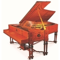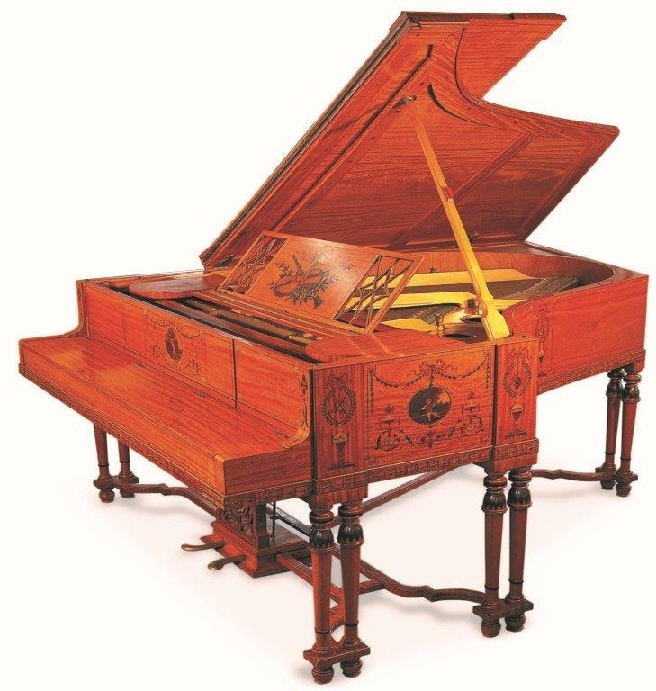 Steinway (c1908) A 6ft 2in Model O grand piano in a painted satinwood art case of Adam Brothers design decorated with panels depicting: musical trophies, cherubs, foliate and swag ornament, raised on five pairs of twin turned legs united by stretchers. Designed by Waring and Gillow; together with a stool.