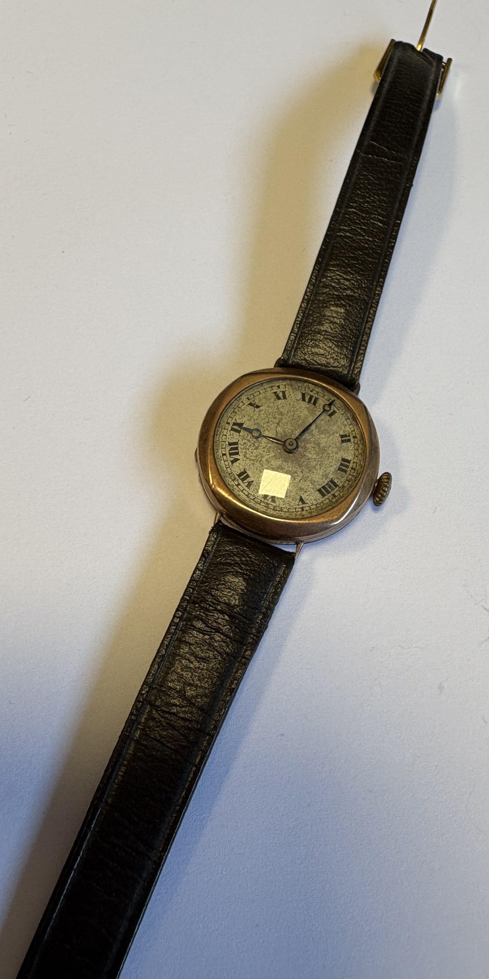 A lady's small gold wristwatch with white enamelled dial. Est. £30 - £50.