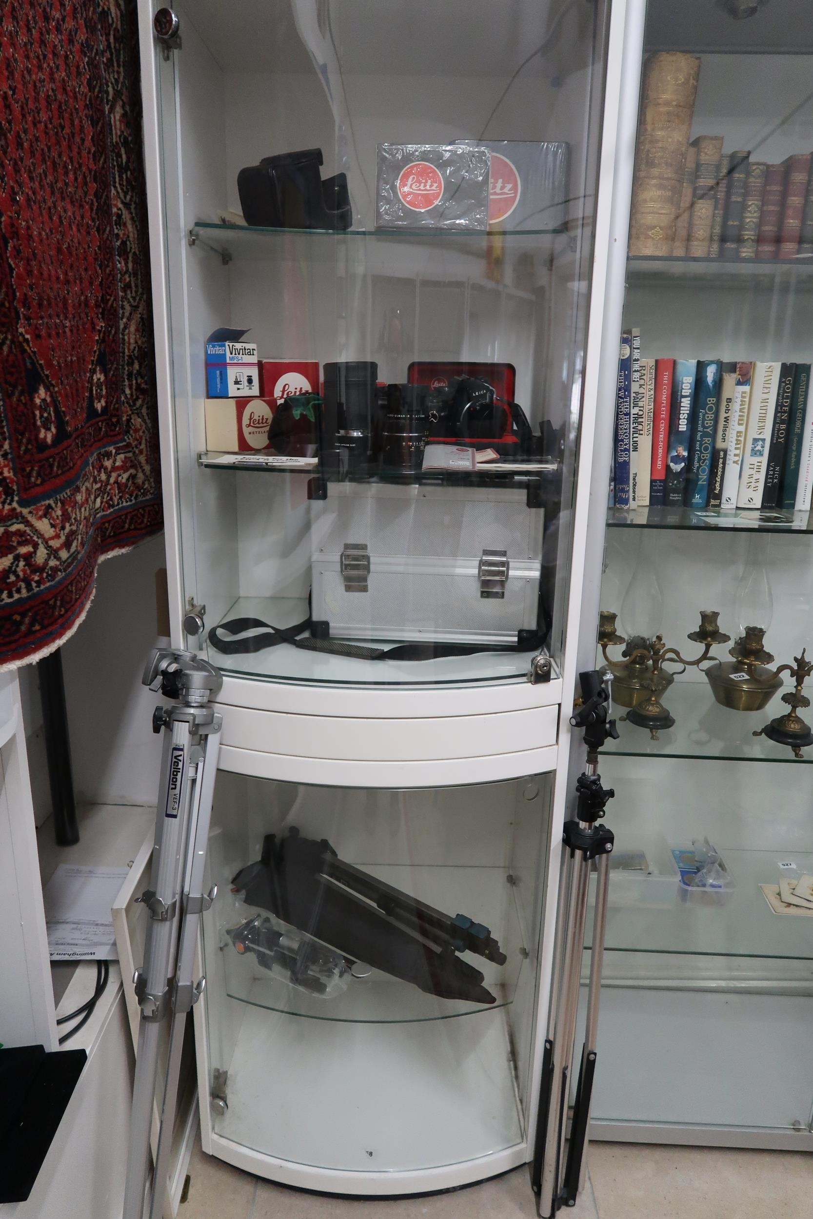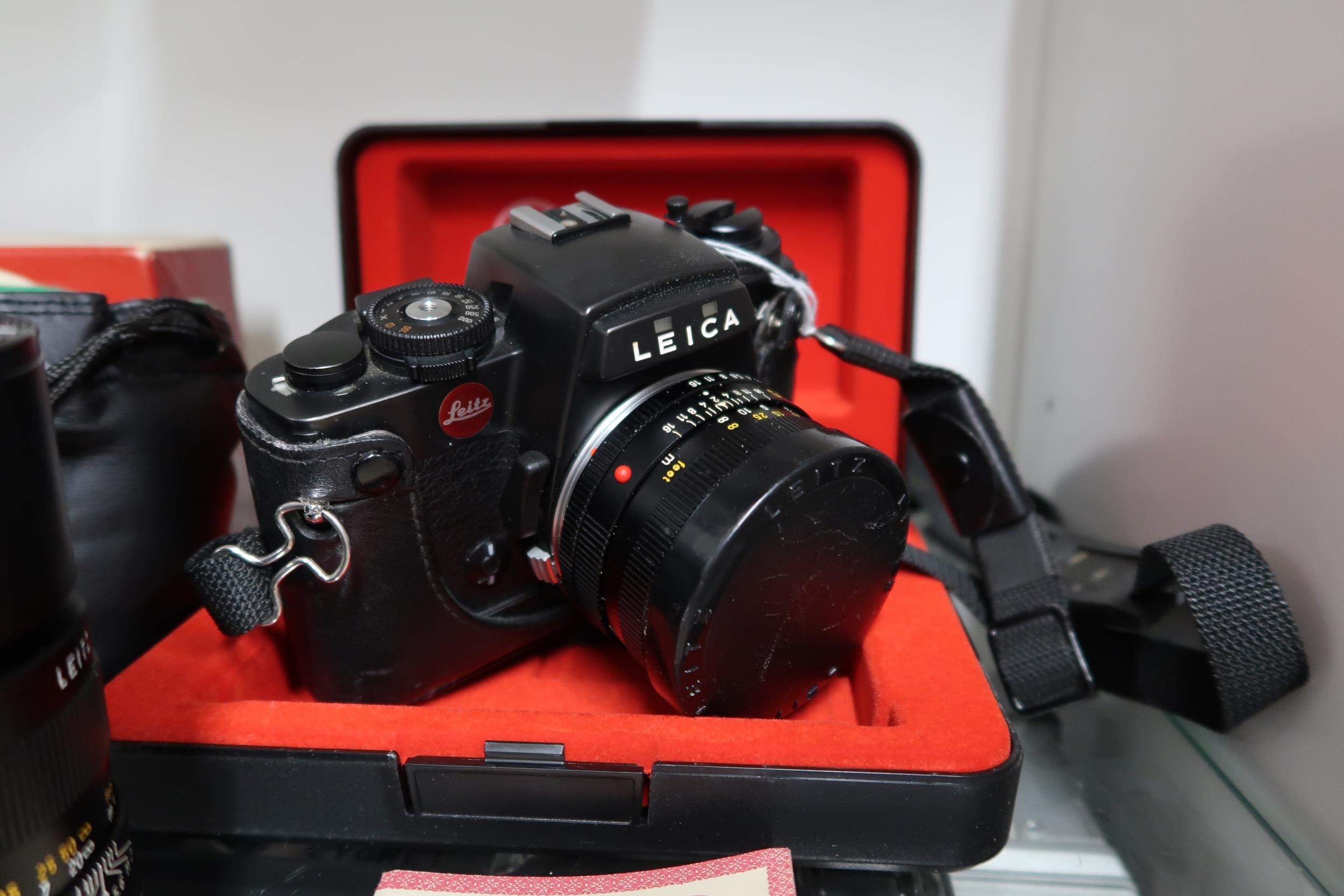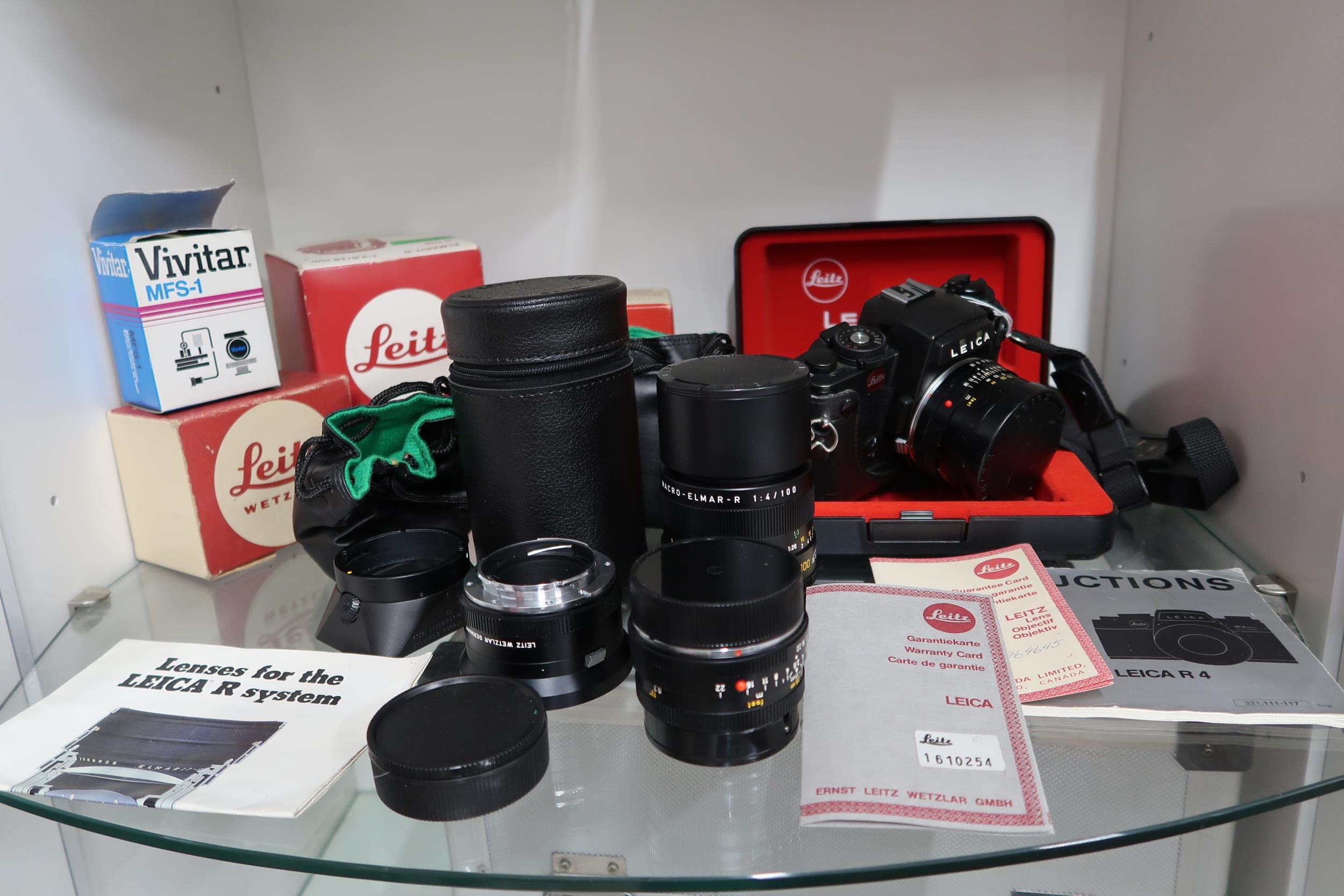 A Leica R4 Camera with original case and assessories to include aditional lenses, filters, tripods and large case.