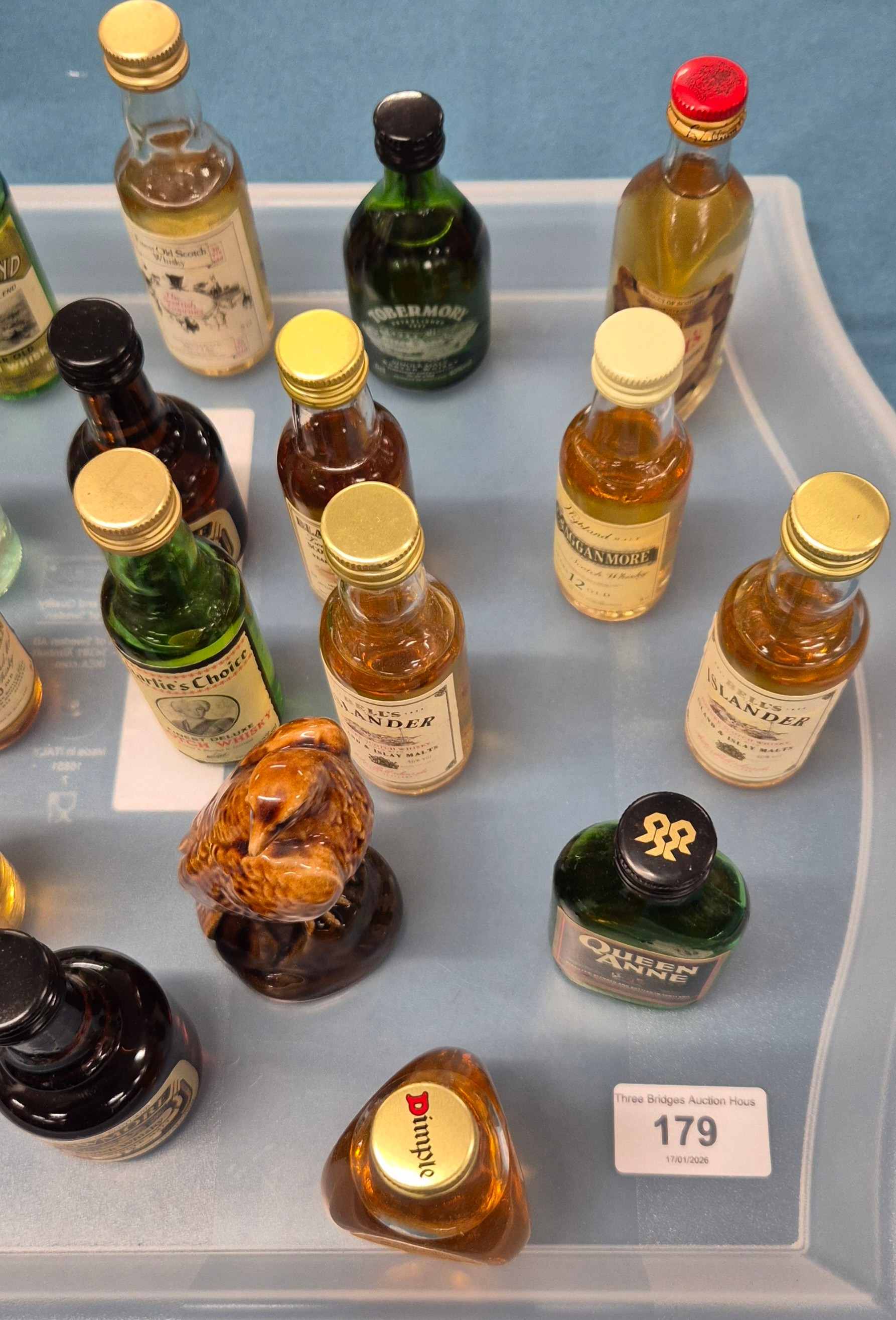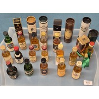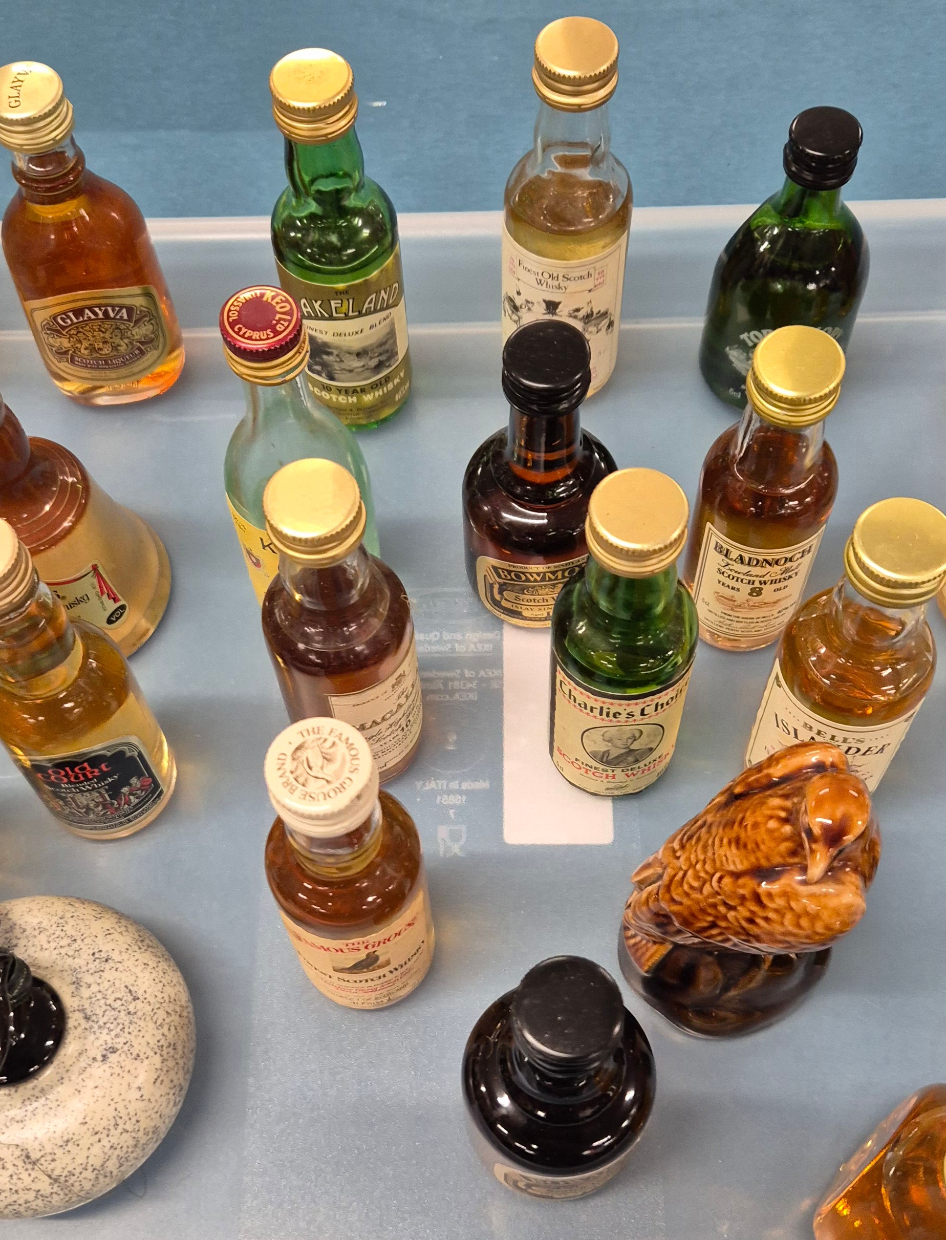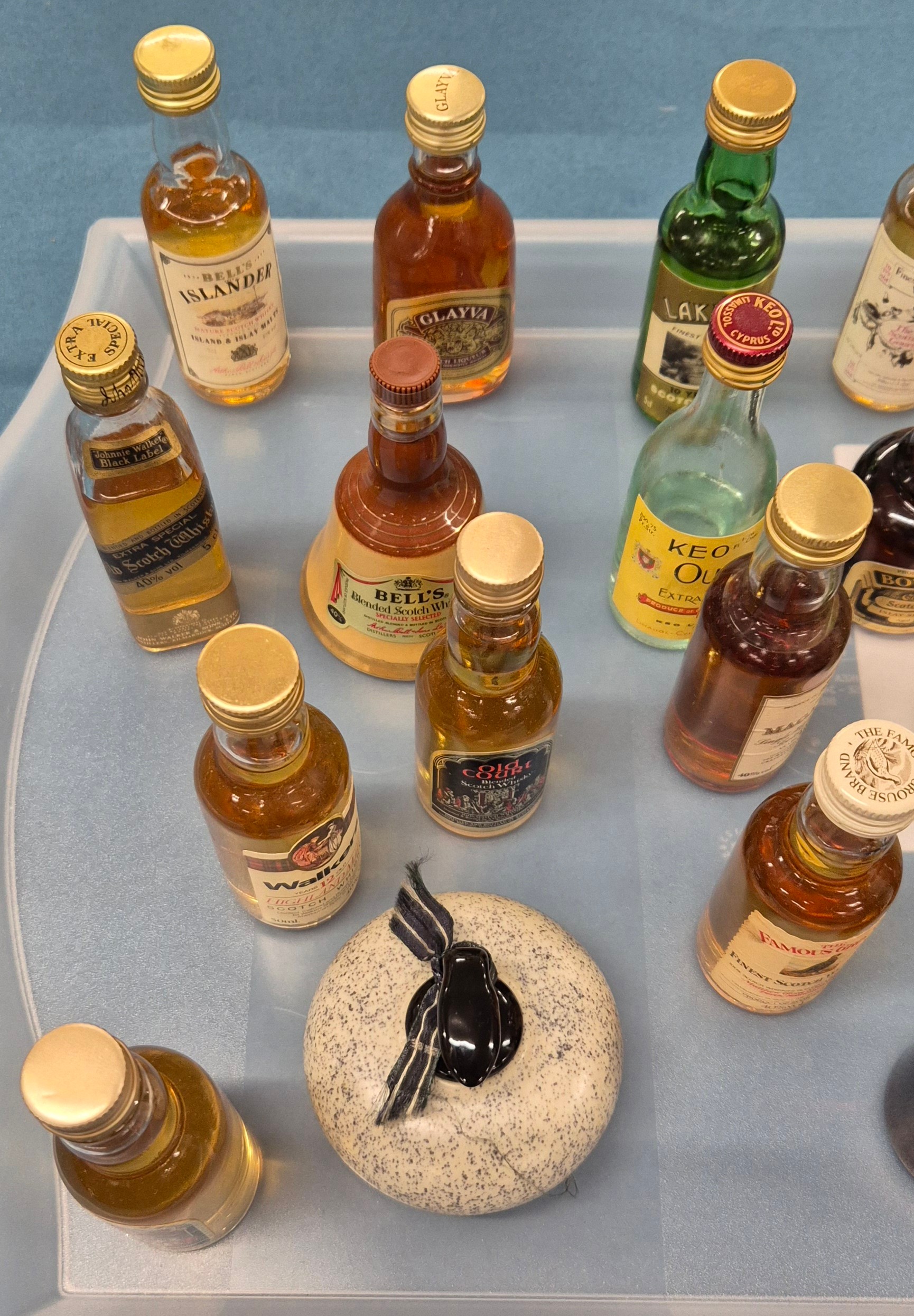 Tray of Miniature Whiskies; Bells- Islander, Glayva, Tobermory, Grant's Bowmore, Charlie's Choice, The Macallan and others.