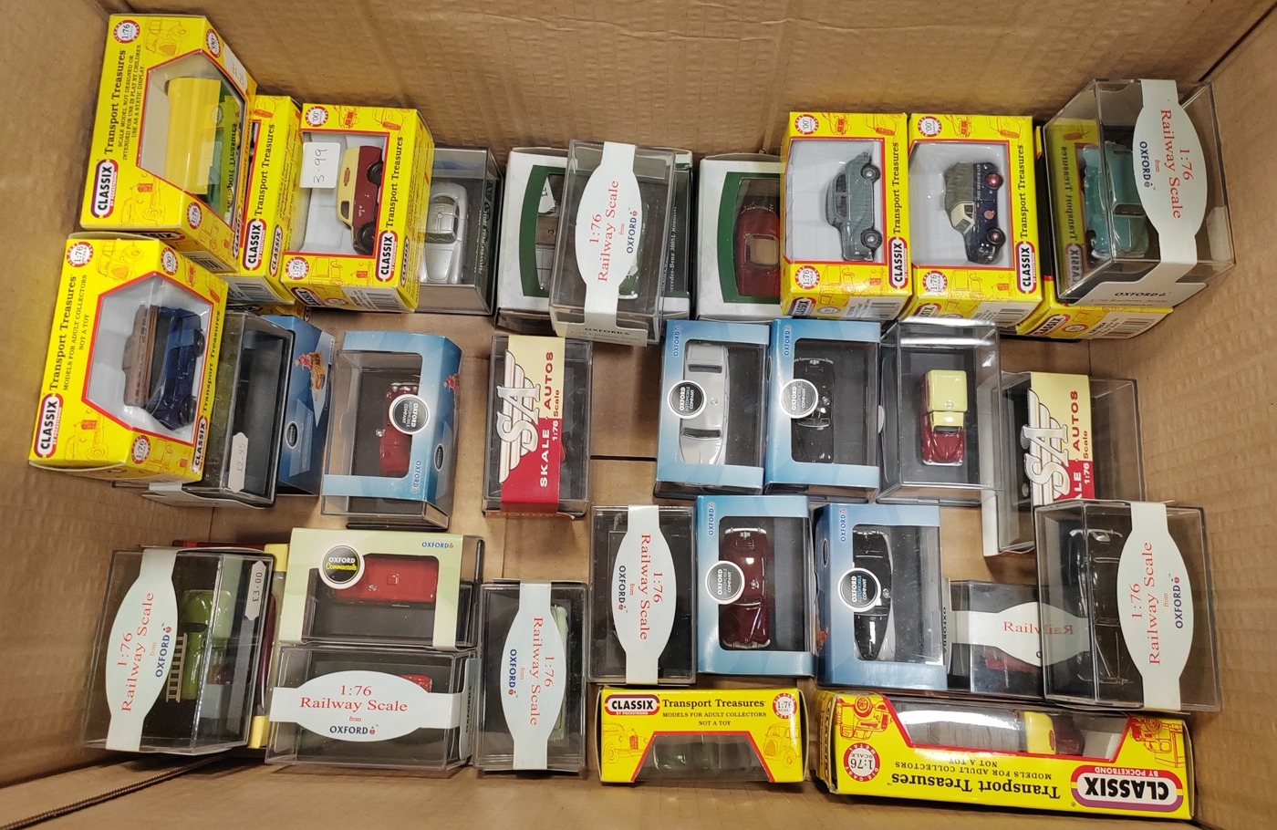 Collection of cars, mint in mostly excellent to mint boxes and blister packs, includes Classix, Corgi, Hotwheels, Matchbox, Oxford. (3B)