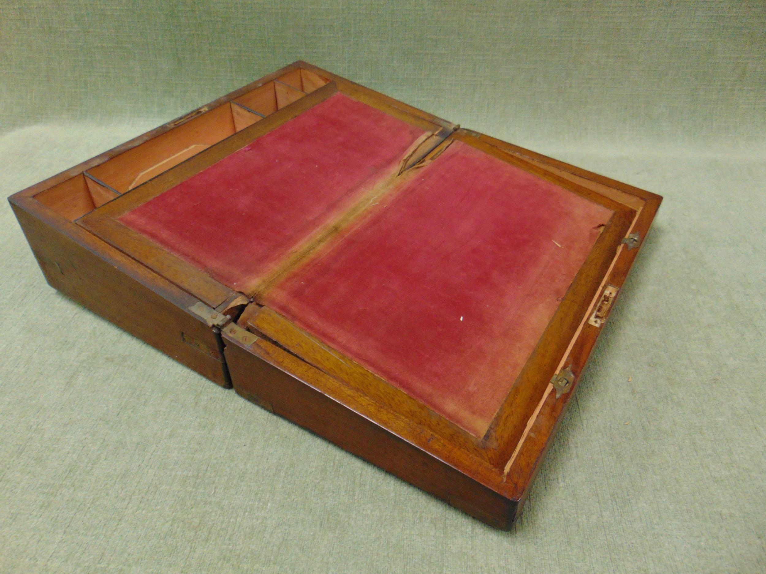 19th century walnut brass bound writing box, having lift up lid and fitted interior, 5.5 x 15.5 x 9" deep.